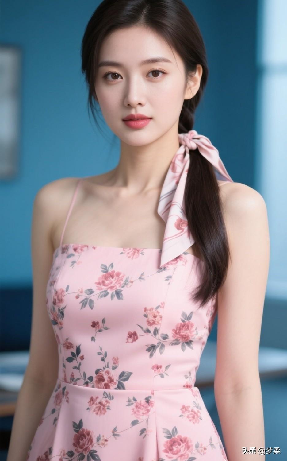温柔粉裙少女,甜美可人,清新自然!