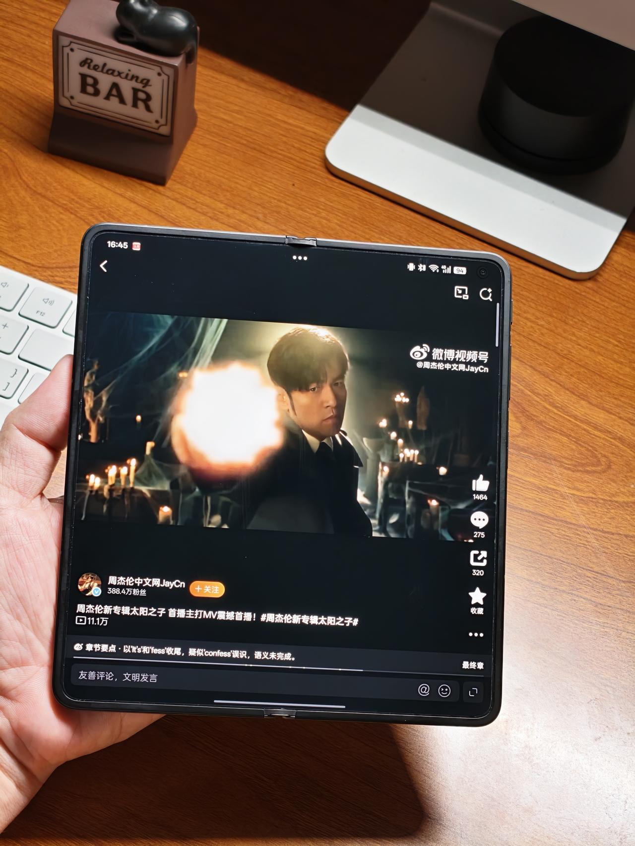 在近乎无折痕的Find N6看周杰伦MV是什么体验? 怎么评价这一次周杰伦新专辑?我觉得还是熟悉的周杰伦风格,旋律流畅入耳,MV很好看,建议1.25倍速度看,可能是没有以前那种比较大的惊喜,比较平吧。 - 在OPPO Find N6折叠屏上看确实有点不一样的体验,因为屏幕几乎没有折痕,你看我在室内这个灯光下,MV视频上下的黑边也看不出折痕,其他折叠屏多少有折痕的。 - 还有我很喜欢Find N6的三分屏,一边看MV还能一边聊天一边刷视频,效率很高是不是?上班摸鱼都轻松不少hhh。Find N6的质感也好了不少,内屏的黑边很窄,是现在折叠屏的第一梯队了。 - 折叠屏的折痕能做到如此程度,看视频的体验会好不少,大家可以去门店试试。 - 周杰伦 周杰伦新歌 周杰伦新专辑 折叠屏手机 OPPOFindN6 分享 换手机