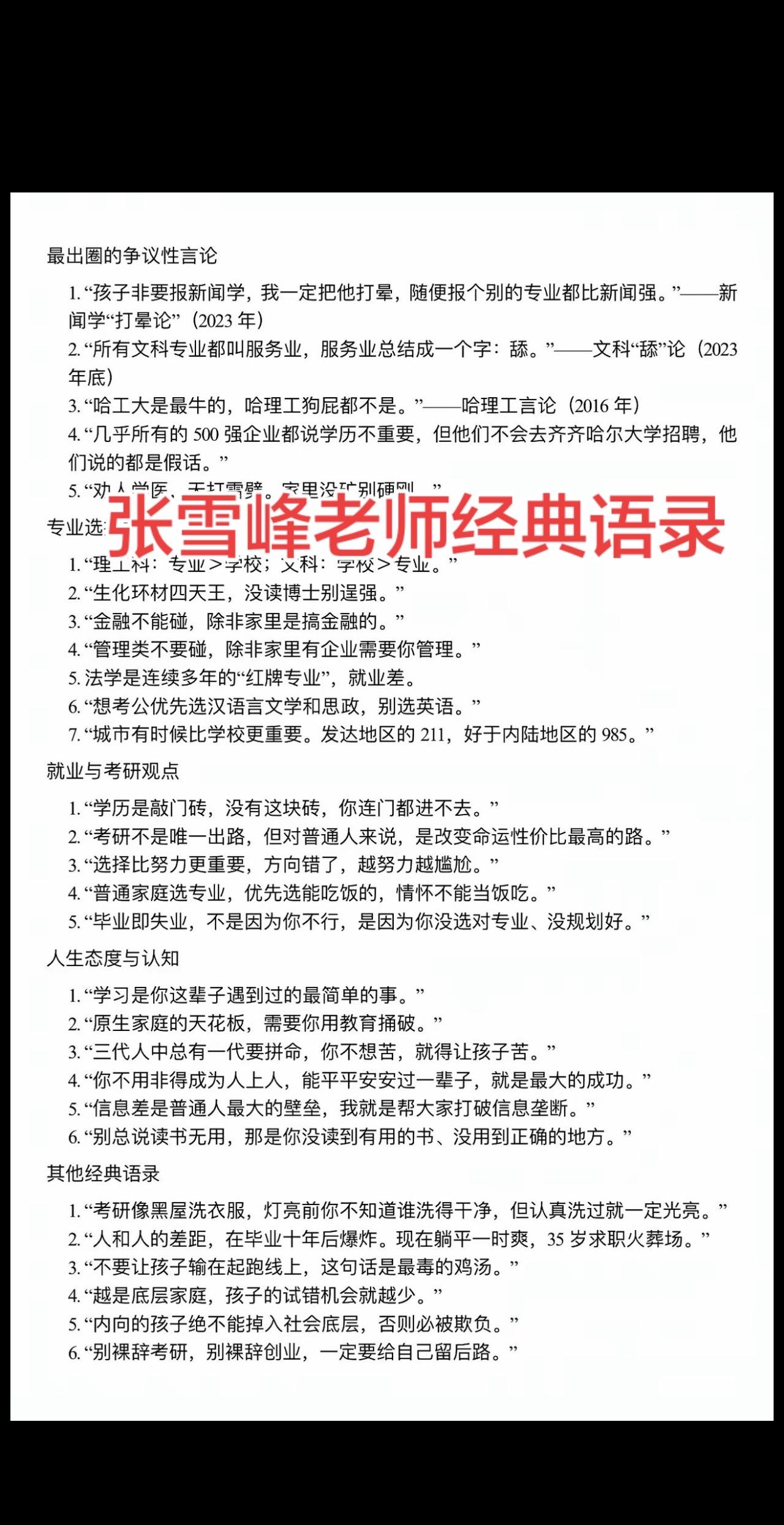天妒英才,山河同悲。 他是这个喧嚣时代里,少有的敢说真话、敢揭真相、敢为普通学子与万千家庭发声的人。不趋炎附势,不随波逐流,以一身赤诚,道尽现实冷暖;凭一腔孤勇,刺破迷雾虚妄。 他用最直白的话语,守护无数人的前途;用最坚定的立场,扛起许多人不敢触碰的责任。这样清醒、坦荡、心怀众生的人,不该被遗忘,更应当被这个时代永远铭记。 谨此纪念张雪峰老师,愿风骨长存,精神不朽。
