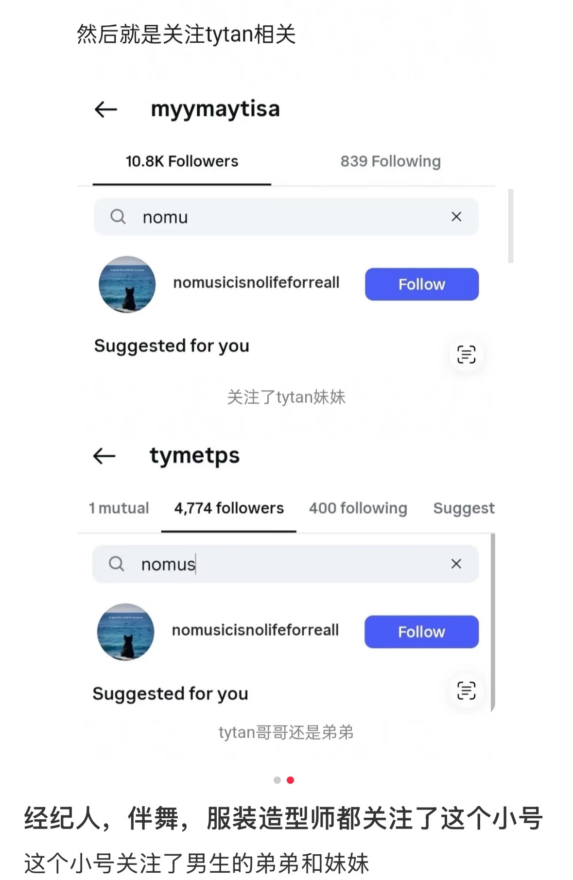 有粉丝扒出minnie小号,发现她关注了绯闻男主tytan的弟弟妹妹