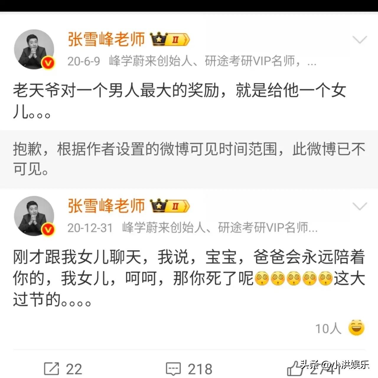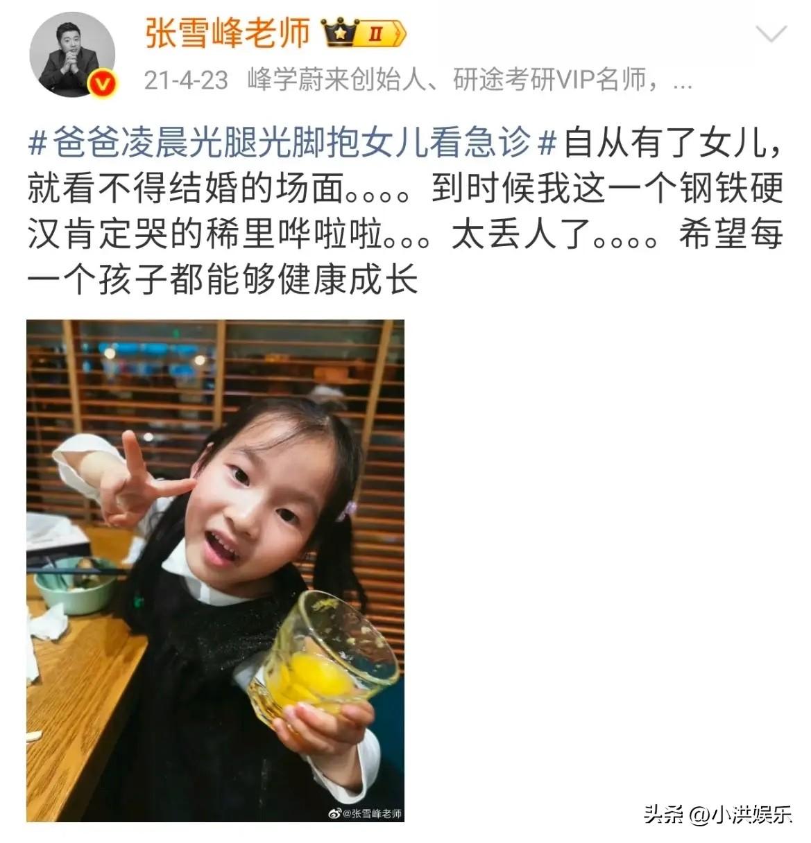 这可能是张雪峰最大的遗憾, 张雪峰的匆匆离去,隐藏了太多的遗憾,其中最大的遗憾可能只有他自己知道, 张雪峰从寒门一跃成为顶流,其中的艰辛大家有目共睹,张雪峰作为一股清流,不仅为寒门做了一个好的榜样,更成为众多孩子的引路人,无数个日夜张雪峰陪伴了太多太多的孩子和家长,但是唯独没有抽出时间陪自己的女儿, 他11岁的女儿可能也会像众多的孩子一样,每天盼望着自己的爸爸早点回家陪伴自己,这可能也是张雪峰最大的遗憾,虽然缔造了财富,但却缺少了陪伴。 张雪峰如果知道是这样的结局,毫无疑问的会抽出时间陪伴女儿,但是为时已晚,只能带着遗憾匆匆离开,真是替张雪峰感到惋惜,大家觉得呢?