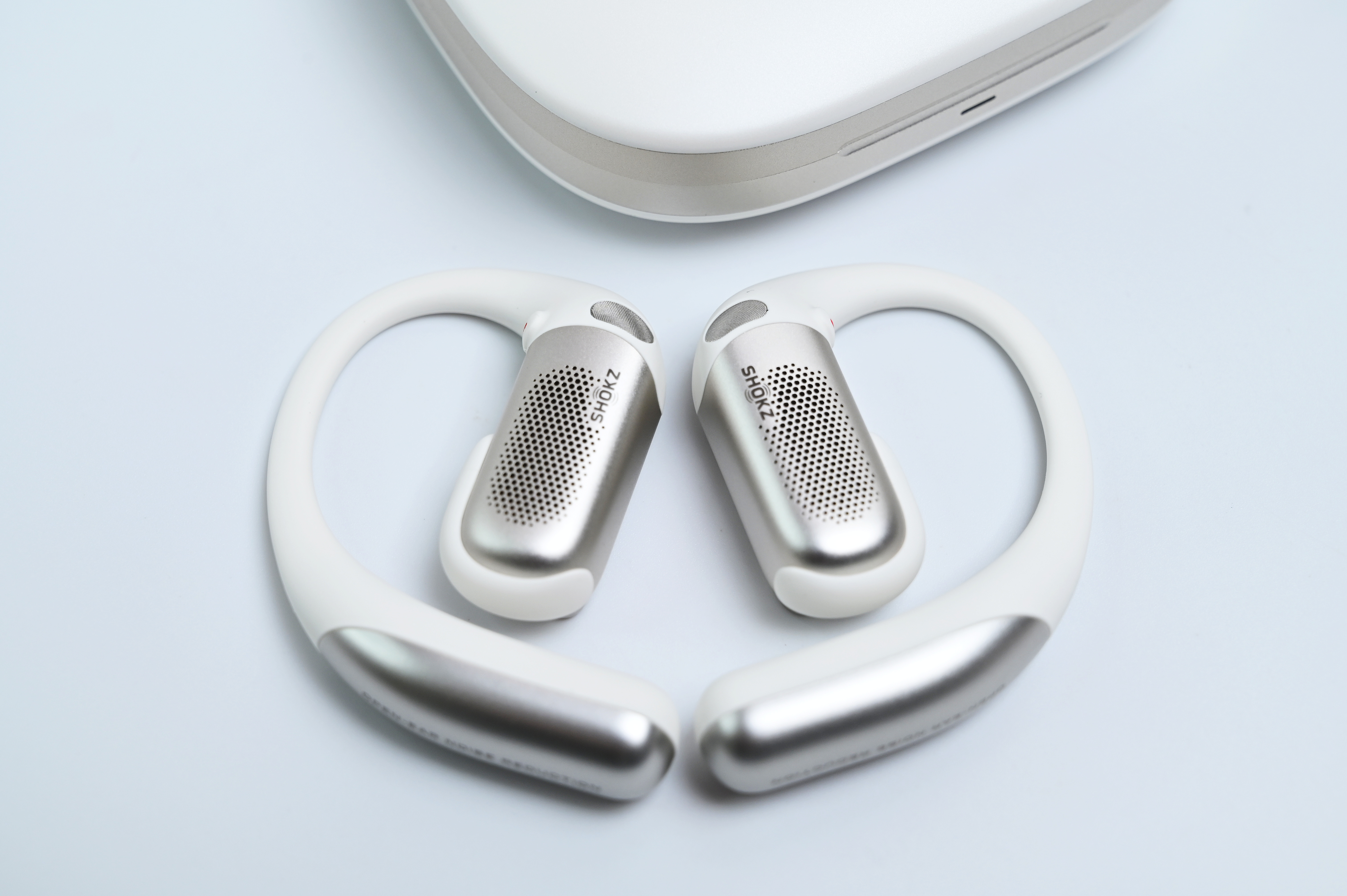 佩戴感也很舒适,海豚弧耳挂贴合耳廓,超零度硅胶软乎乎的,戴一整天耳朵都不疼,甩头、跑步也纹丝不动,戴眼镜也完全不打架。单耳三个麦克风太实用了,户外打电话风噪被压得很干净,对方听我说话超清晰,再也不用扯着嗓子喊。