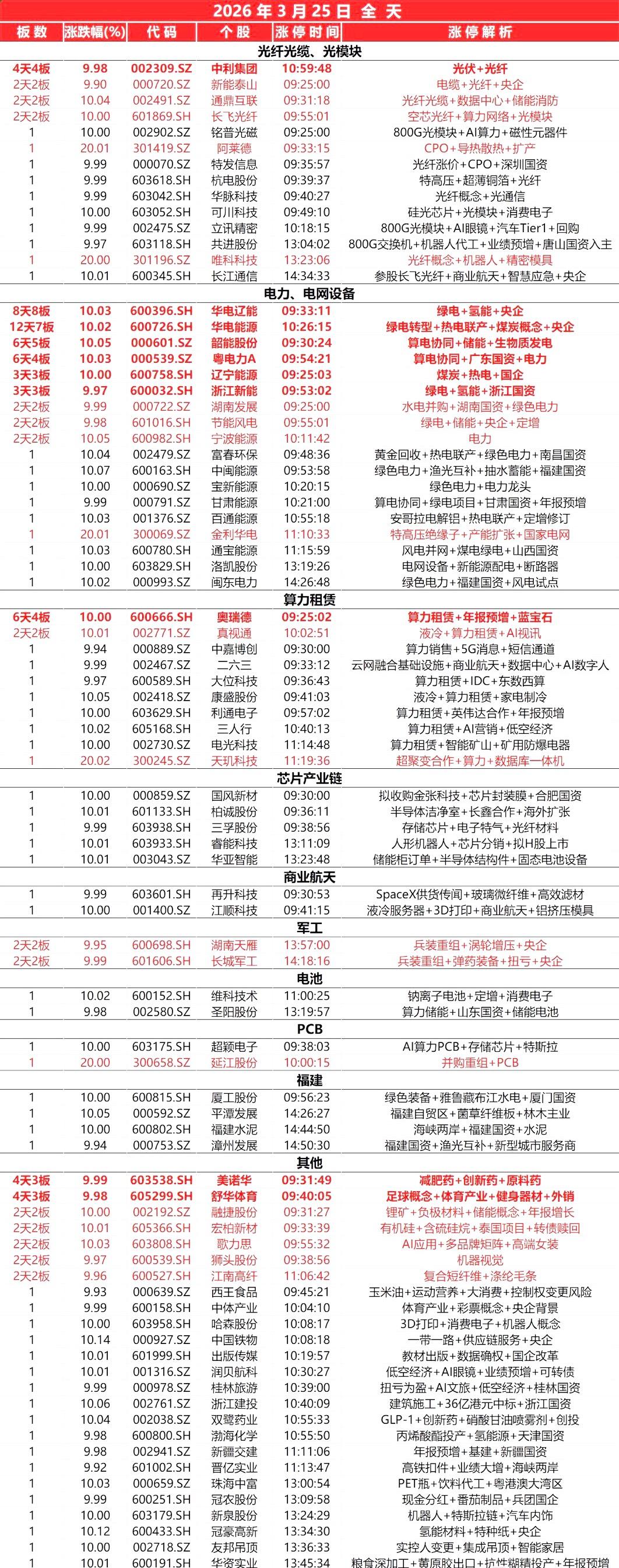 封板个股(3.26)
