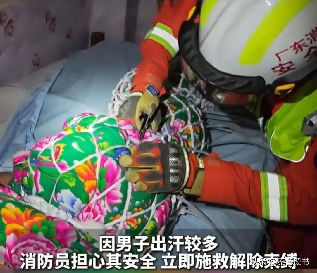 广州一外卖小哥送餐时,突然听到呼救声,赶紧报了警。民警赶到后,发现男子被捆成一团。民警问:是谁?谁知,男子却支支吾吾地不肯说。 广州街头,一名外卖小哥正忙着送餐,途经一处居民楼时,一阵微弱又急促的呼救声突然传入耳中。 他瞬间停下脚步,凑近墙边仔细辨别,确认声音来自屋内后,不敢有丝毫耽搁,立刻拿出手机拨打了报警电话。 接到报警后,民警与消防员迅速赶赴现场。 打开门后,眼前的一幕让众人有些意外:一名男子被裹在被子里,身体外还缠着一层渔网,扎带将他牢牢固定在床边,动弹不得,模样十分狼狈。 因男子被困许久,浑身冒汗神情慌张,消防员担心其身体出现不适,立刻上前小心翼翼地剪断扎带,解开渔网与被子,帮他成功脱困。 随后民警上前询问情况,追问是谁将他捆绑至此,可男子却低着头支支吾吾,半天说不出一句完整的话。 民警见状,以为他是遭遇他人胁迫,想要包庇施暴者,便耐心劝说,告知其生命安全最重要,不必顾虑。 在民警的反复开导下,男子终于红着脸道出实情,让人哭笑不得。原来捆绑他的不是别人,正是他自己。 近期网上流行“扎带逃生挑战”,男子一时好奇跟风效仿,用被子、渔网裹住身体,再用扎带将自己捆在床边,本想尝试自救脱困,没想到操作失误,彻底挣脱不开,慌乱之下只能大声呼救。 看似有趣的网络挑战,实则暗藏安全隐患,盲目模仿极易引发意外,危及自身安全,玩闹需有度,危险行为切勿轻易尝试。