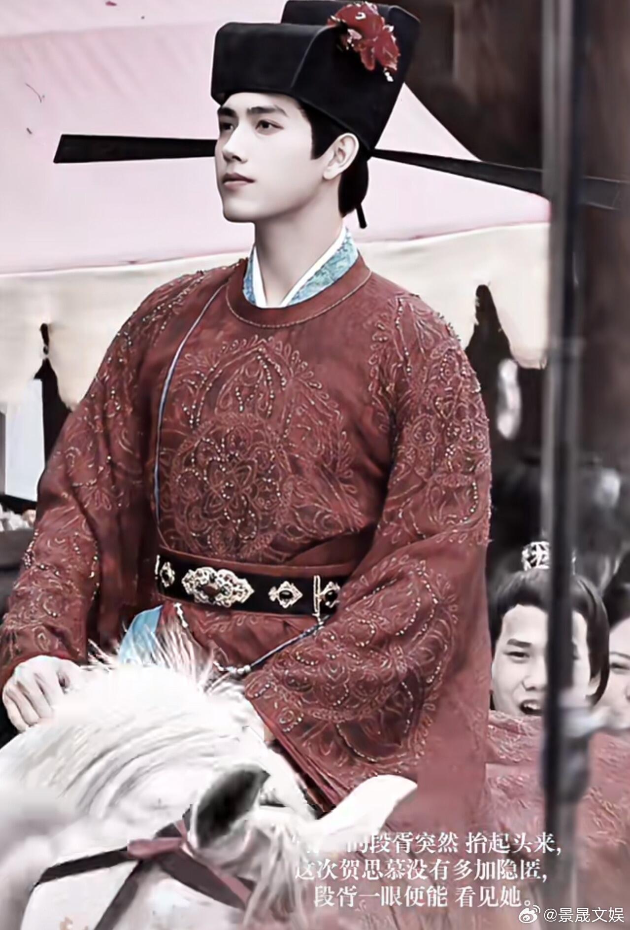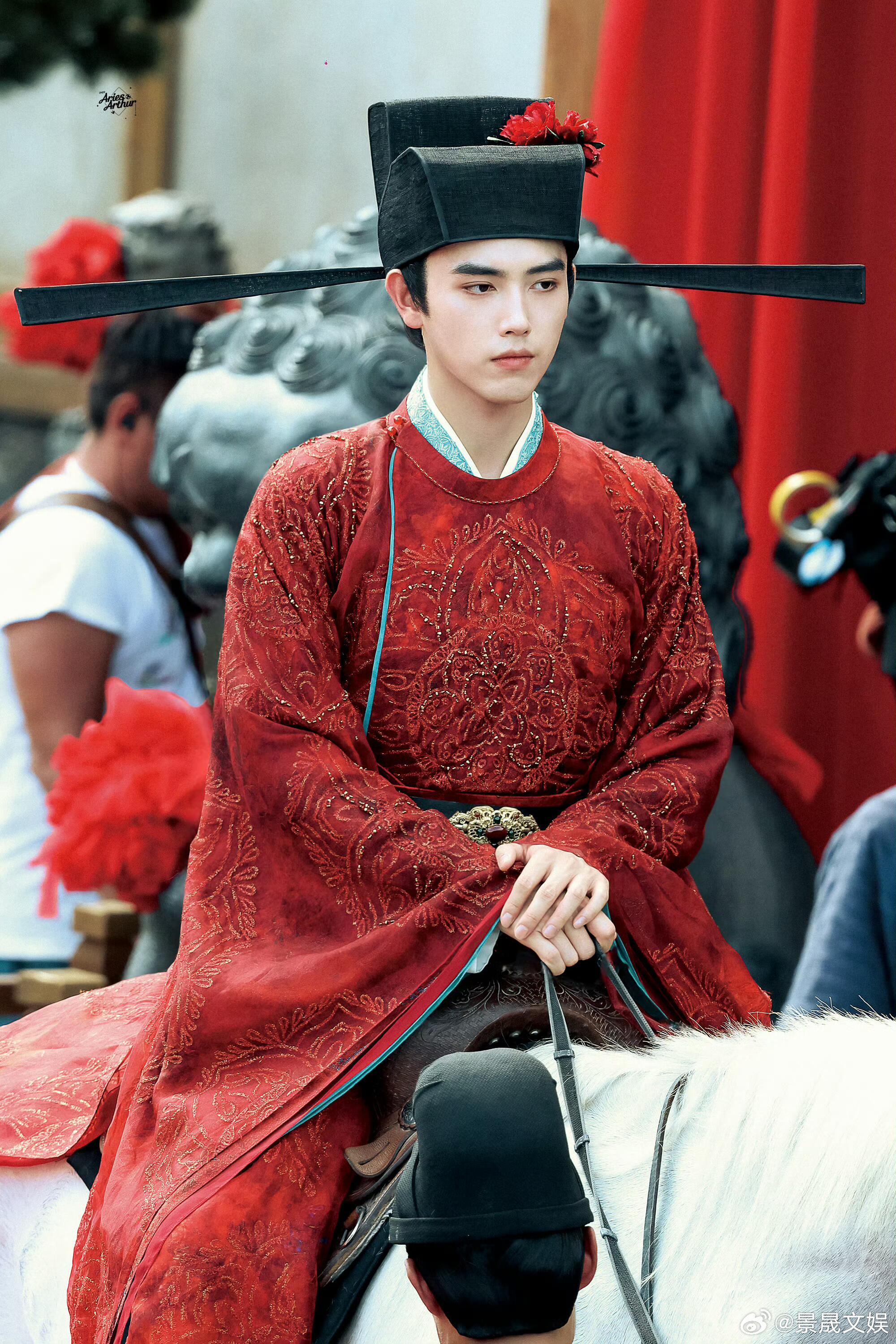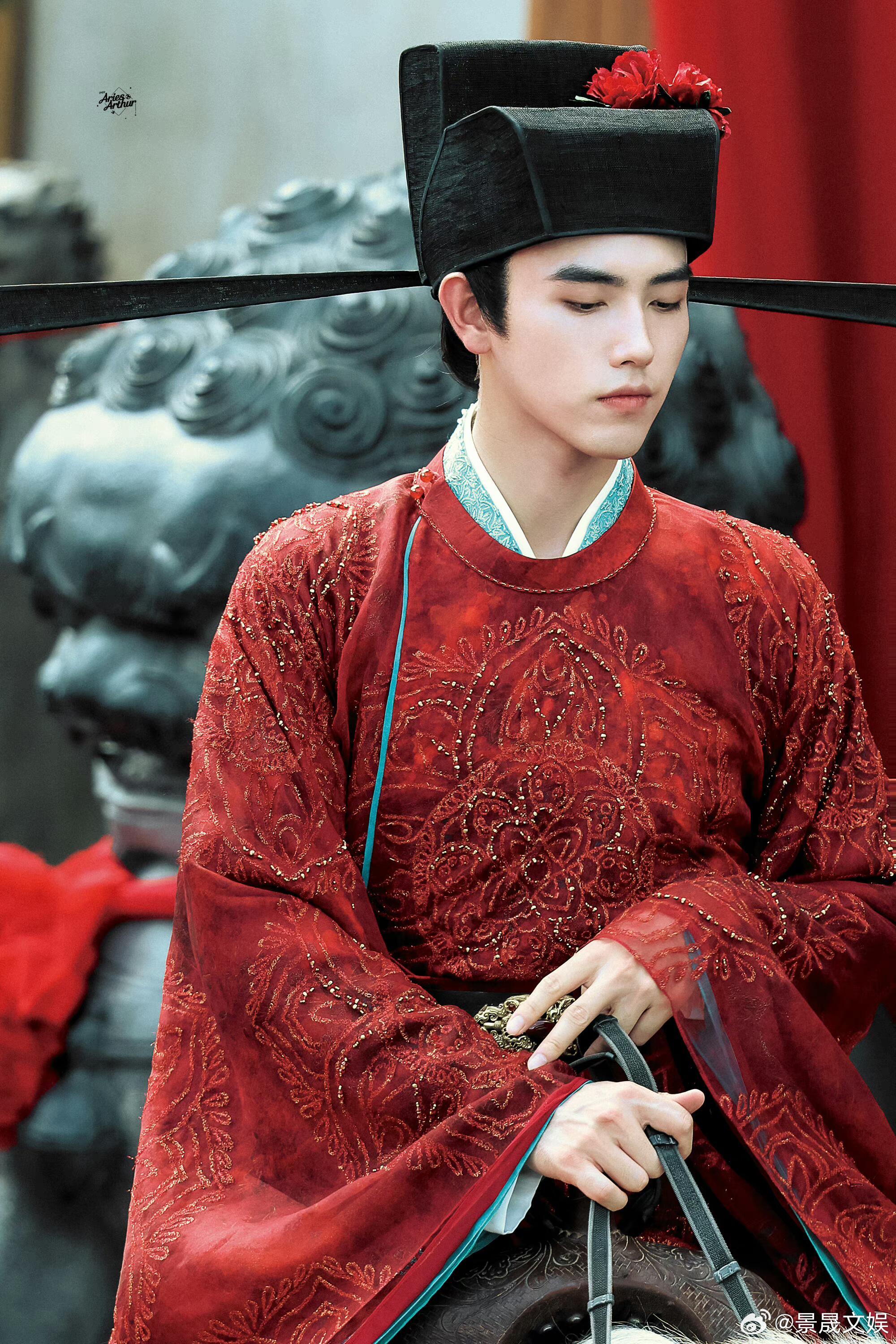 陈飞宇白日提灯新郎官造型一袭红衣婚服加身,陈飞宇挺拔身姿撑起衣袍线条,静立端庄大气,走动飘逸灵动,不愧是网友夸赞的古装身段双绝。