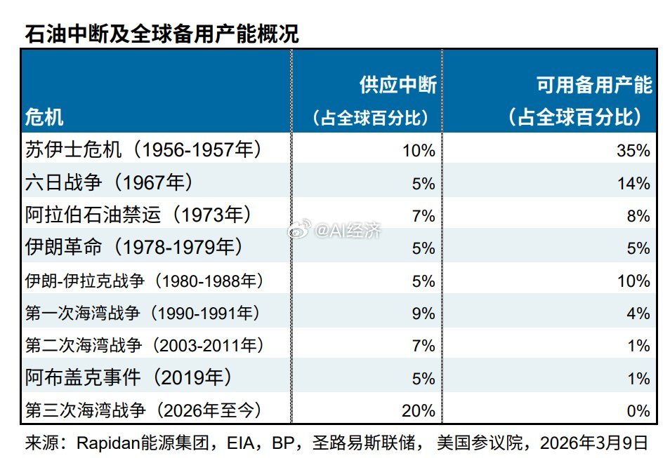 这波石油中断占全球20%,是二战后最严重的石油中断市场显然没有完全计价如果不能