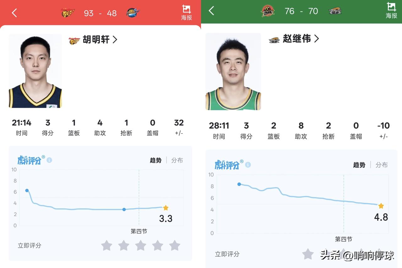 今晚胡明轩跟赵继伟真是难兄难弟,堪称南慕容北乔峰 区别就是广东赢了四川,胡明轩只拿到3分,辽宁输给吉林,赵继伟也只拿到3分俩大国手后卫今晚都是铁匠,已经火花四溅不分伯仲。 cba越来越离谱了,比赛中一切皆有可能,别管什么国手球星,都有低迷出糗的时候,当初热爱单纯的篮球比赛,如今却成了看大型喜剧现场,并且你方唱罢我登场