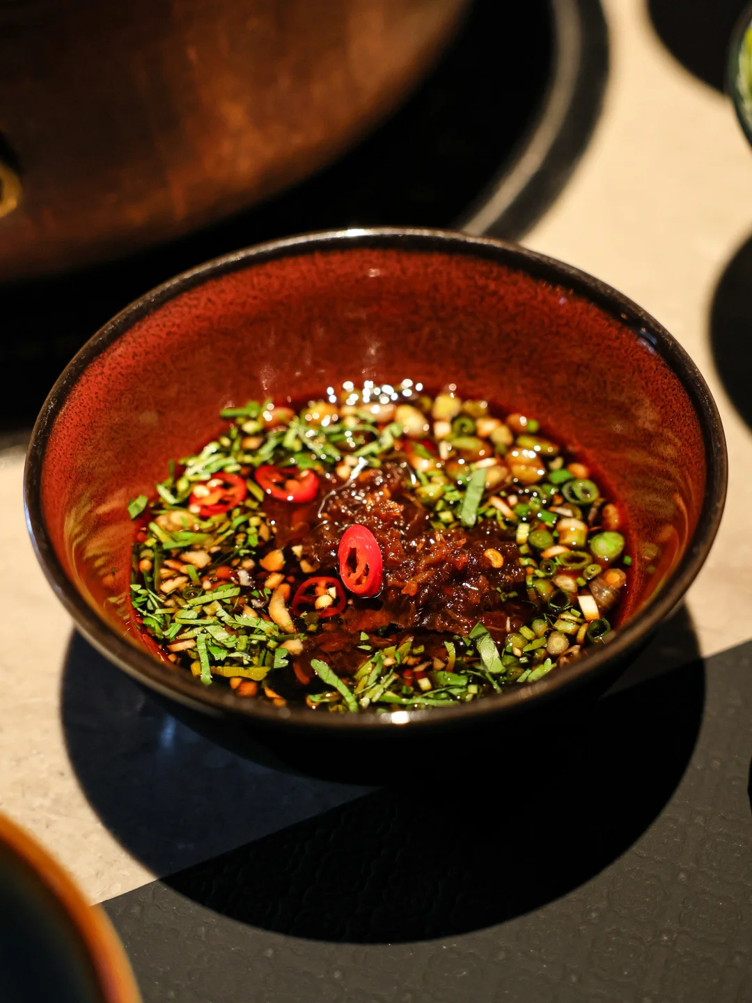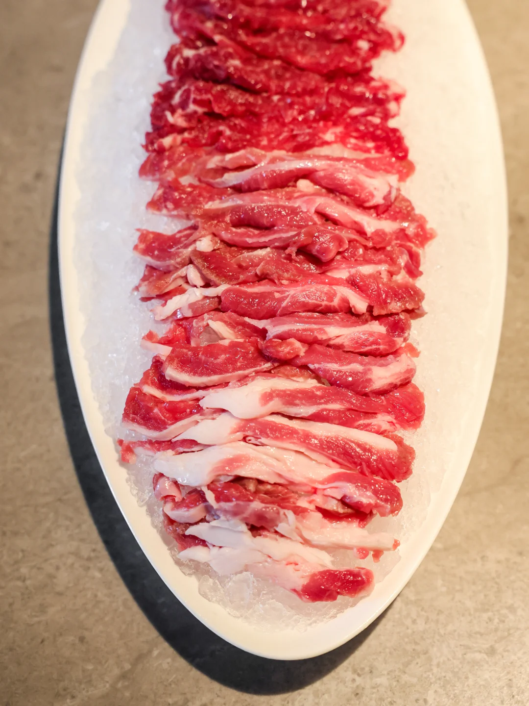 🥩鲜切牛肉羊肉的品质都很好,不是那种肥牛羊片,肉感更为丰富,还会根据肉配好不同的料碟。