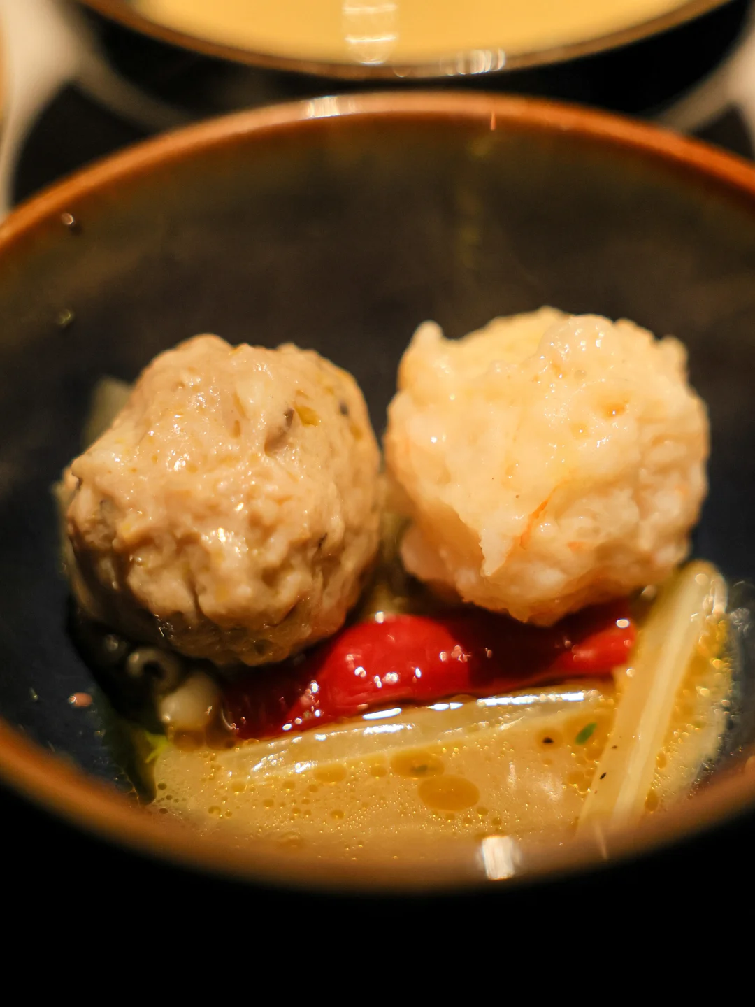 🐷一颗猪肉丸+虾肉丸都是肉感含量极高的那种,鹅肠很脆,值得单加,鸭血也不错,毛肚稍微逊色了一些,没那么脆。