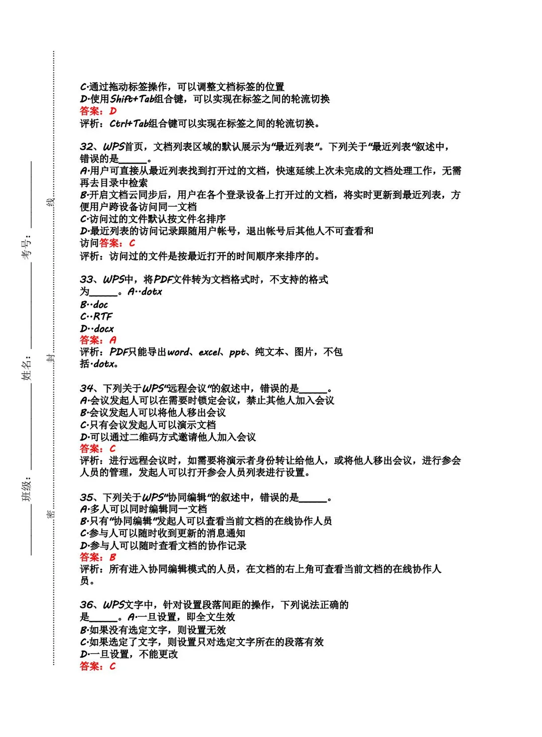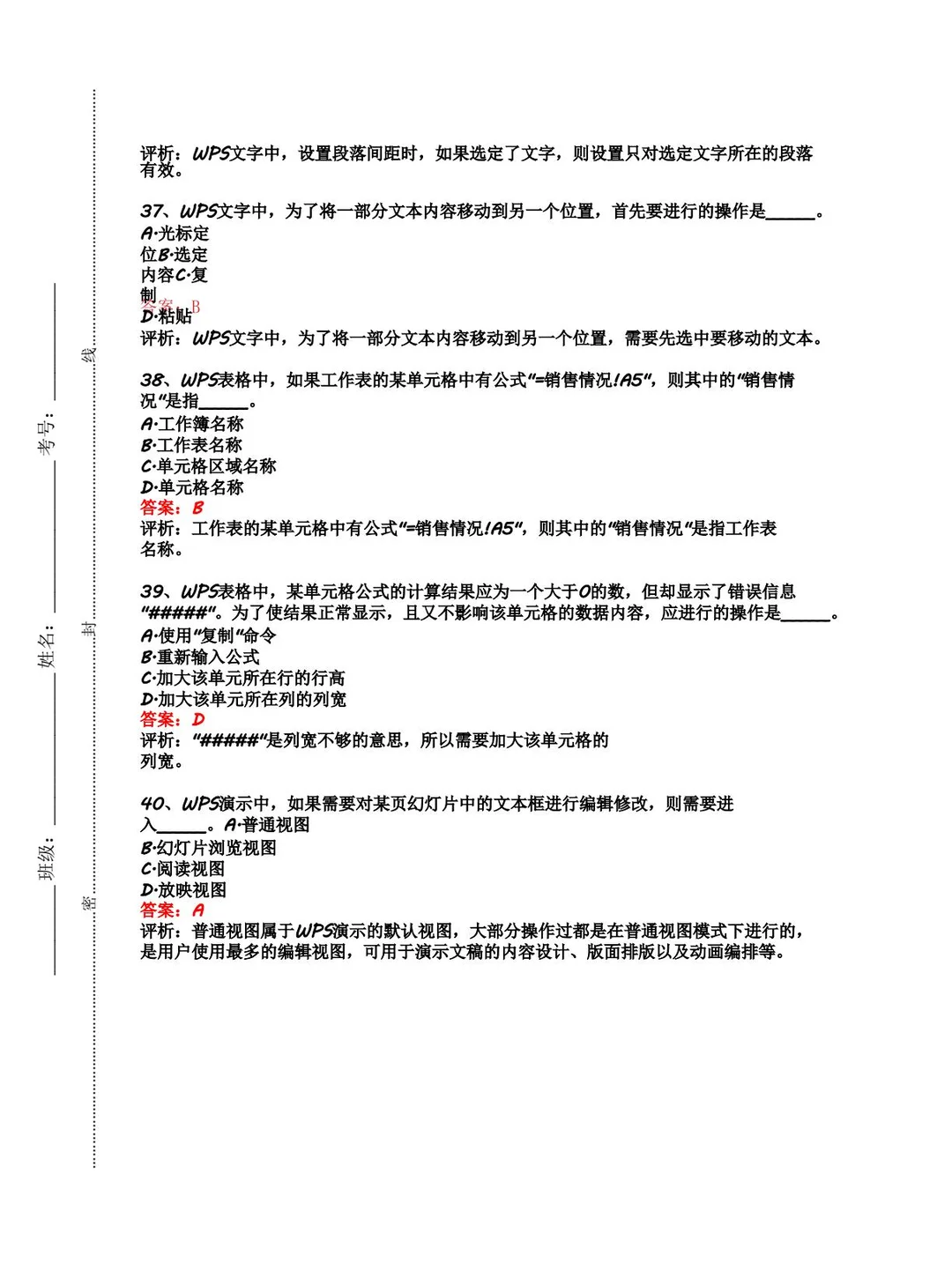 计算机二级WPS选择题精选40题直接背🔥