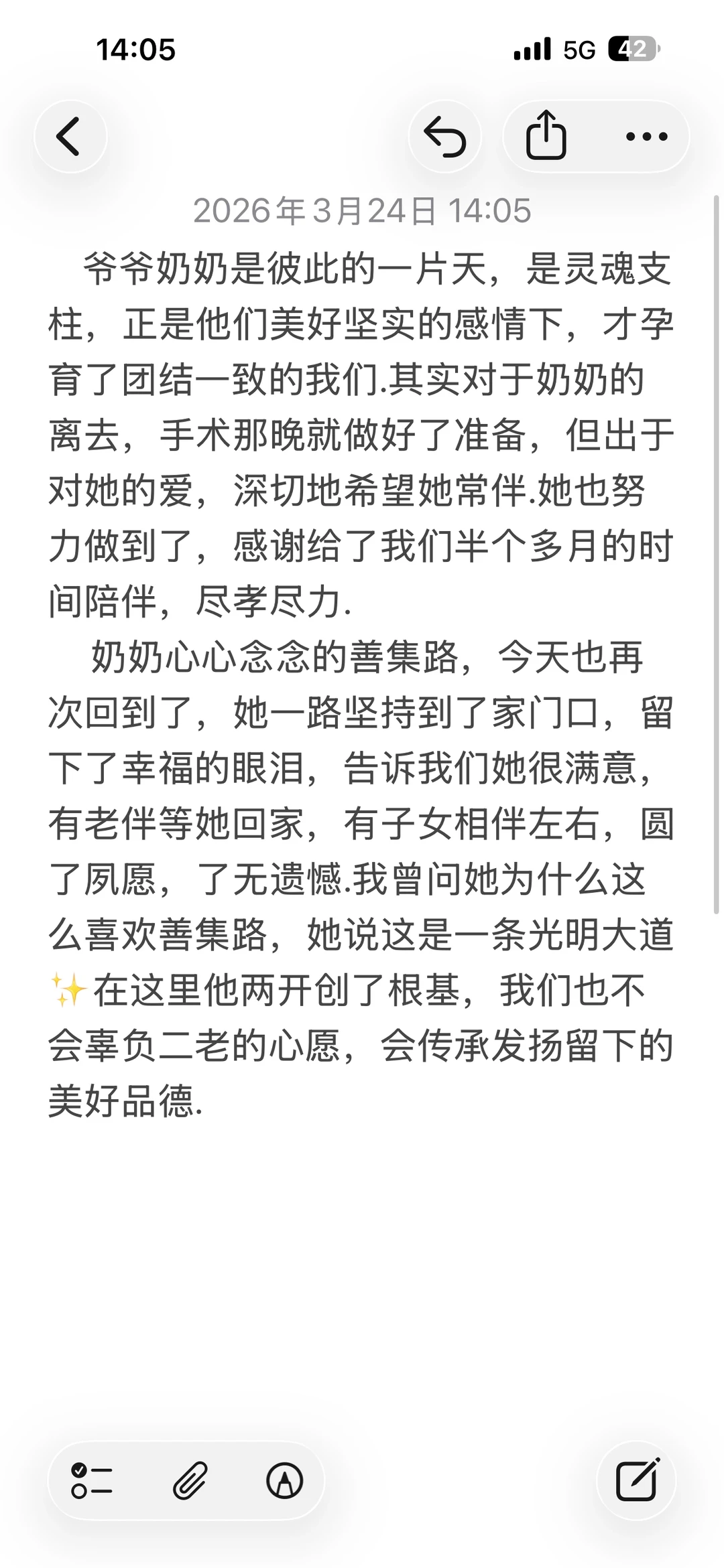 2026年两个月内送别了爷爷奶奶两位至亲,先是爷爷在睡梦里离去,然后是奶奶收到打击生病手术,然后坚持了半个多月让我们尽孝榻前.今天作为孙女,写一封离别信给二老,祝你们一路走好,先去另一个世界等我们团聚哦