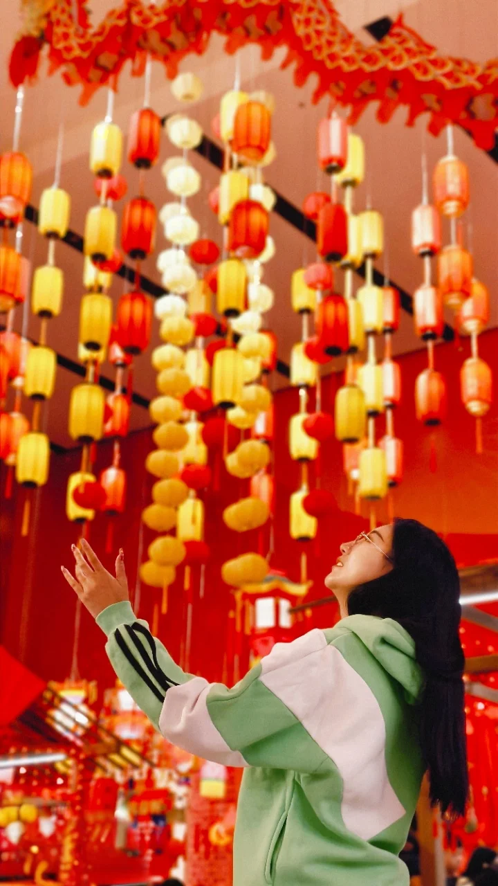 真的被头顶的灯海狠狠拿捏了!满眼都是红黄交织的小灯笼串成的星河,抬头伸手去够,好像能触到新年的好运。每一盏都亮得温柔,光影落在脸上,瞬间觉得自己被年味包裹住了。