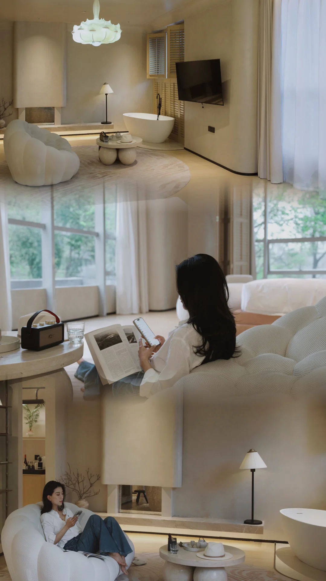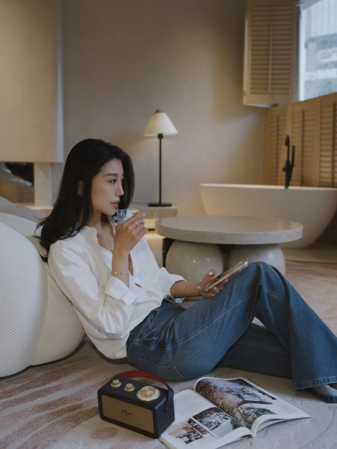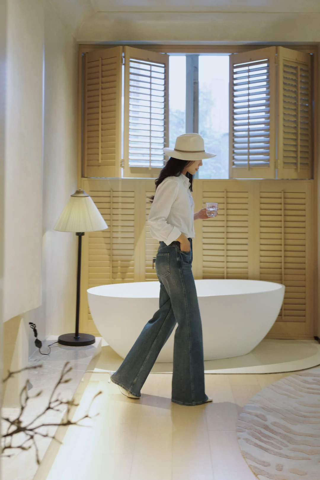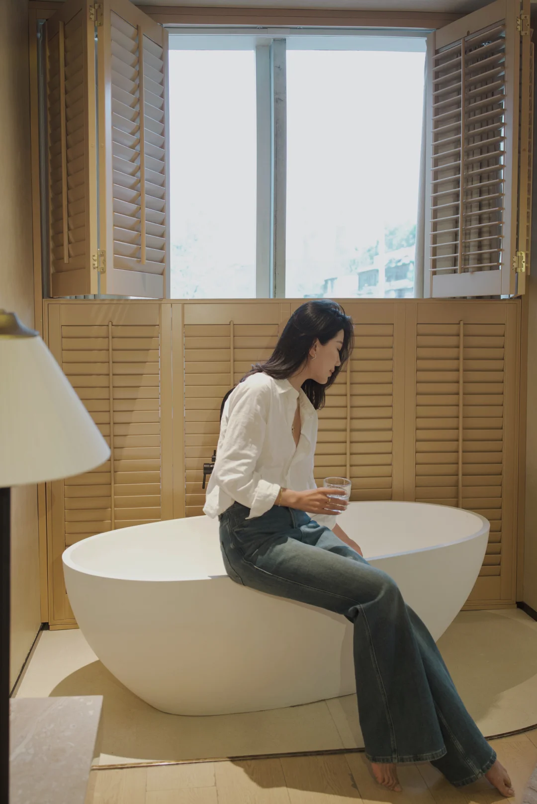 走进不远的酒店,推开木色百叶窗,春日光影漫过白墙,窗外是老城的烟火,窗内是熨帖的松弛。白衬衫与牛仔裤的自在,是这里最日常的注脚——倚窗读半页杂志,在浴缸边静享一杯清水,或是窝在软榻上听音箱里的慢歌,连时光都变得柔软绵长。