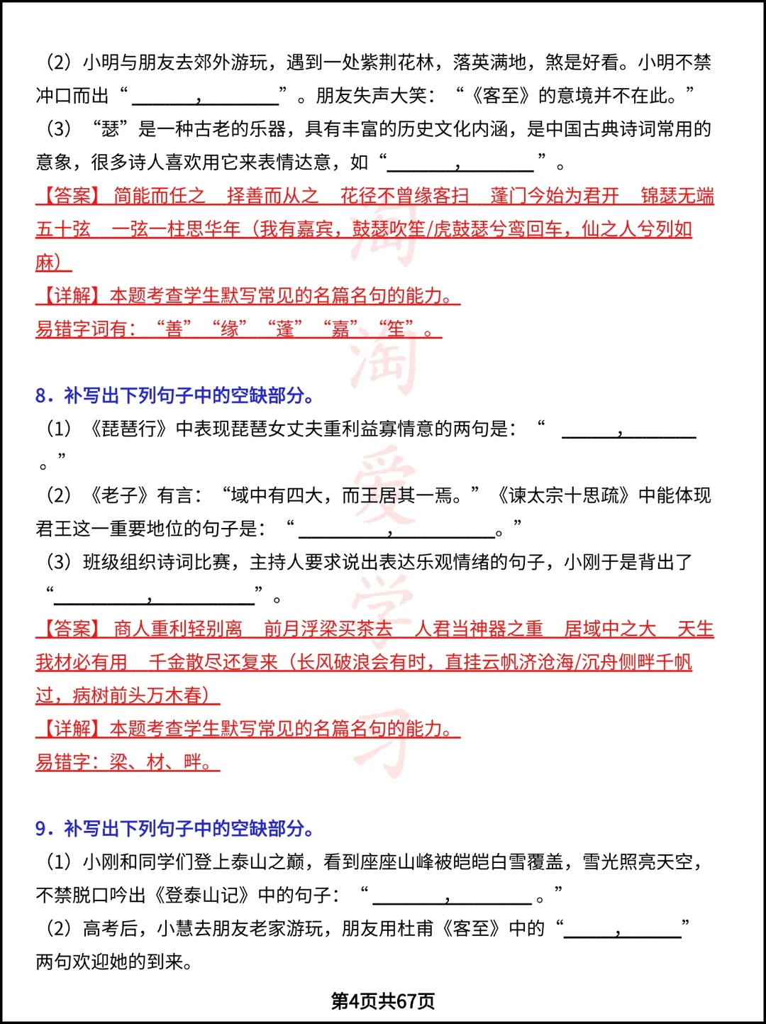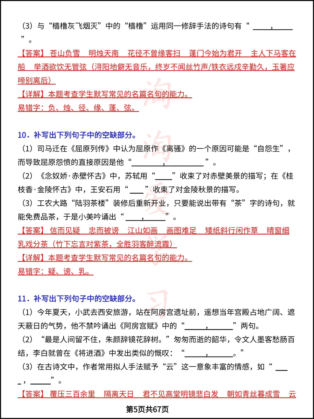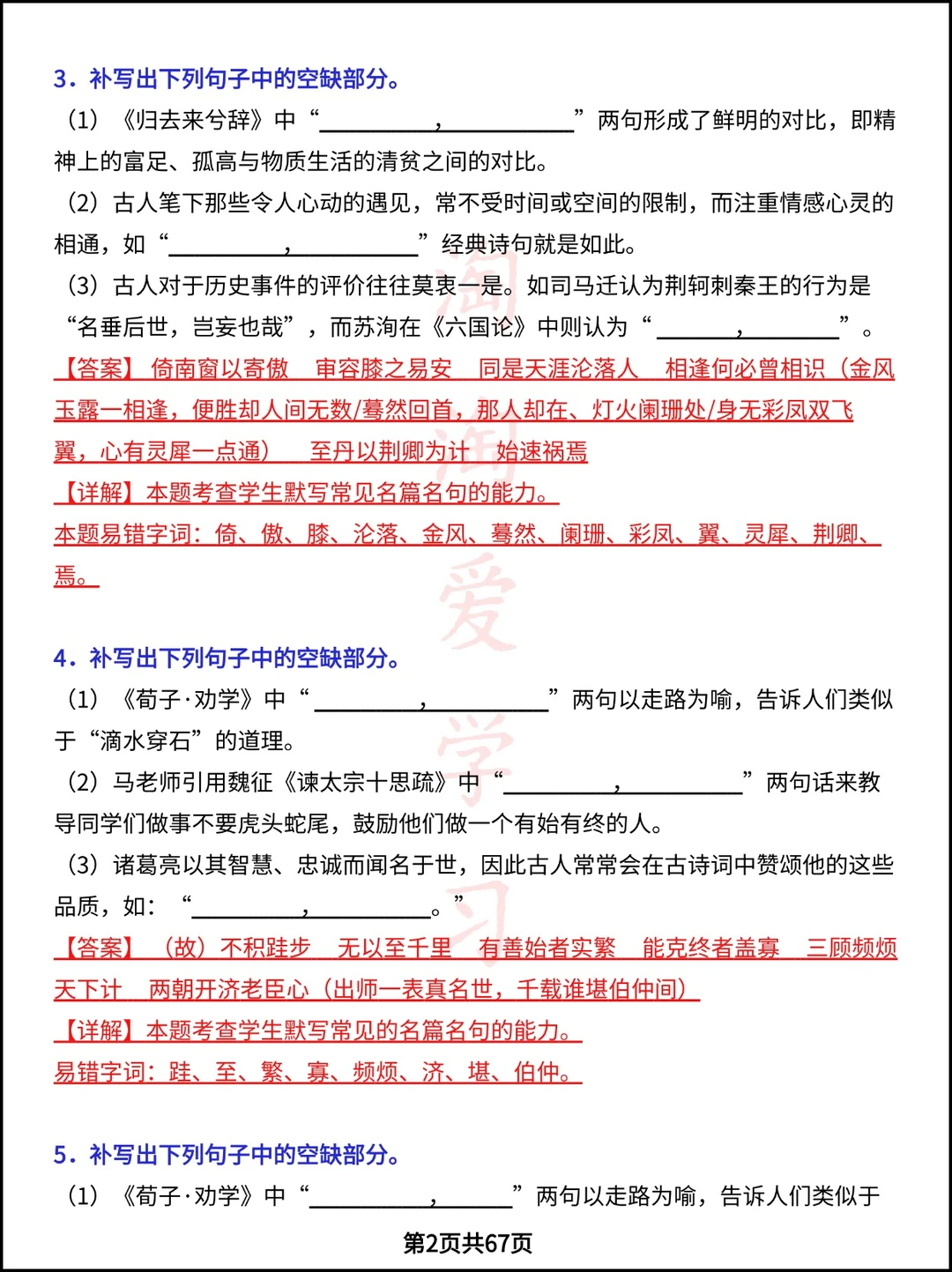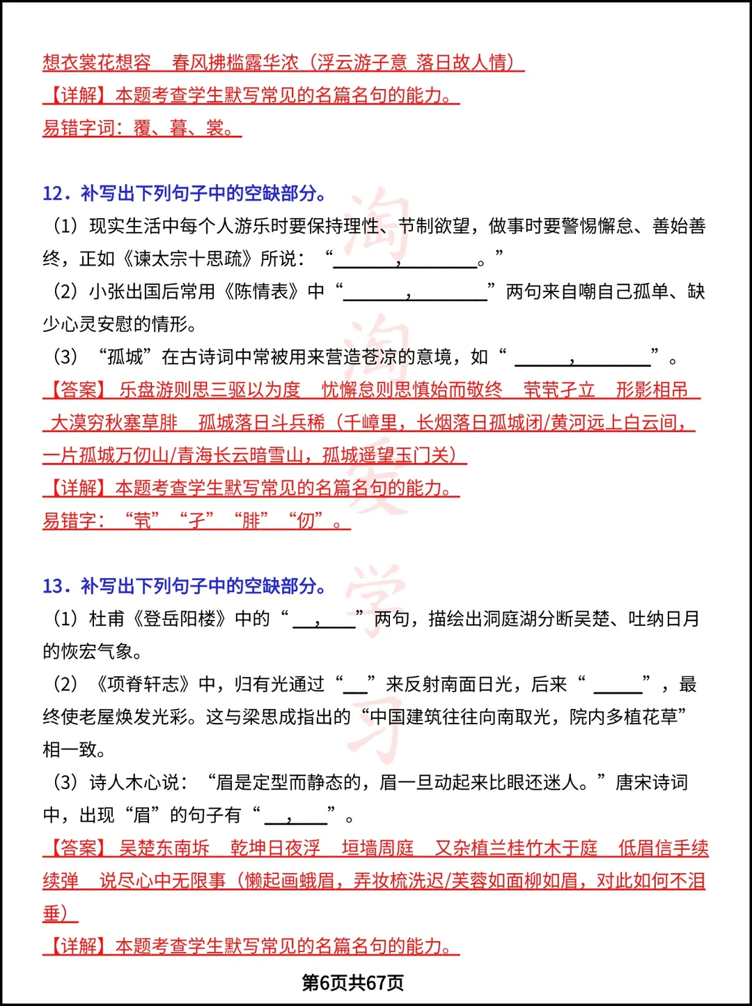 学习 高中资料 高中文言文 高考语文 专项训练 语文默写 高考加油 语文知识点 学霸笔记 学习
