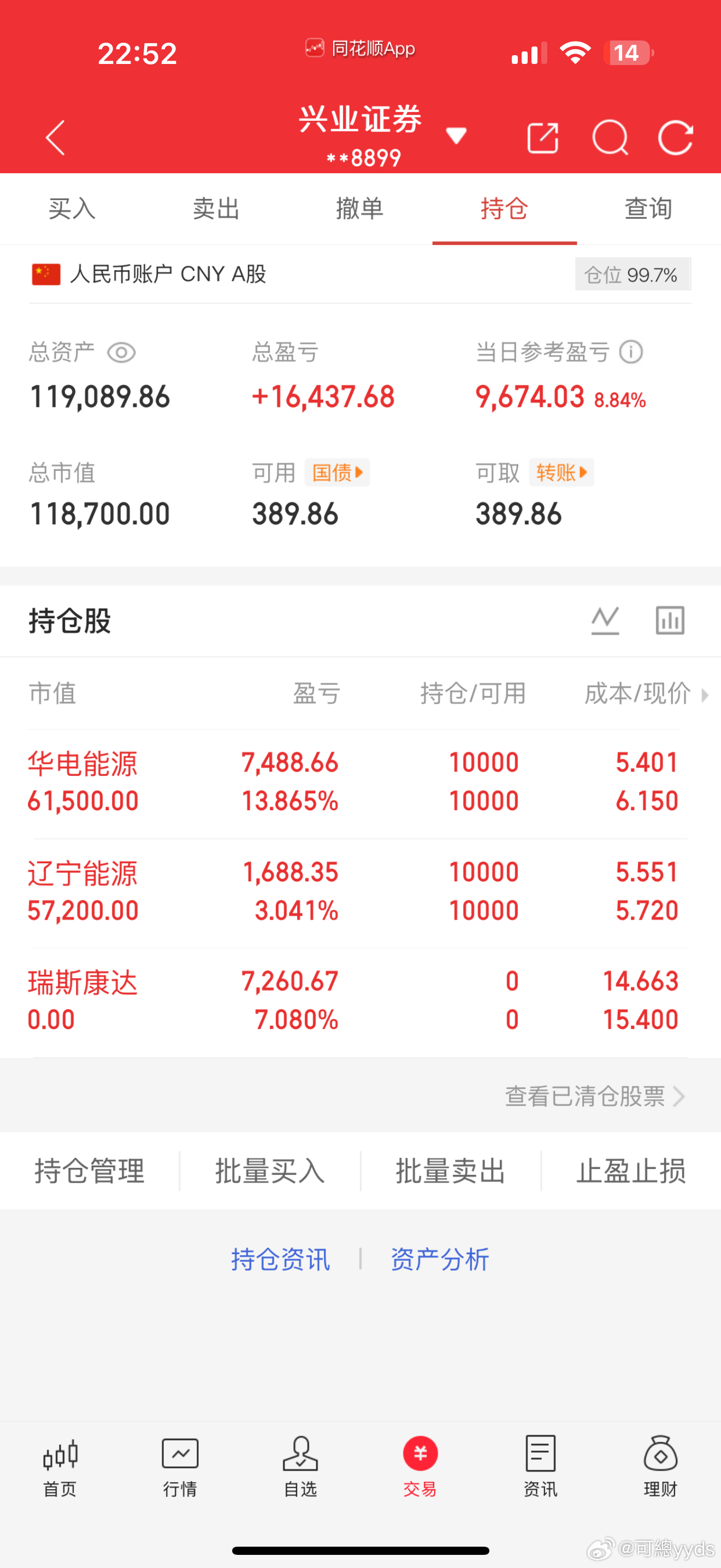 华电能源:10000股,成本5.401元,现价6.15元,浮盈13.87%