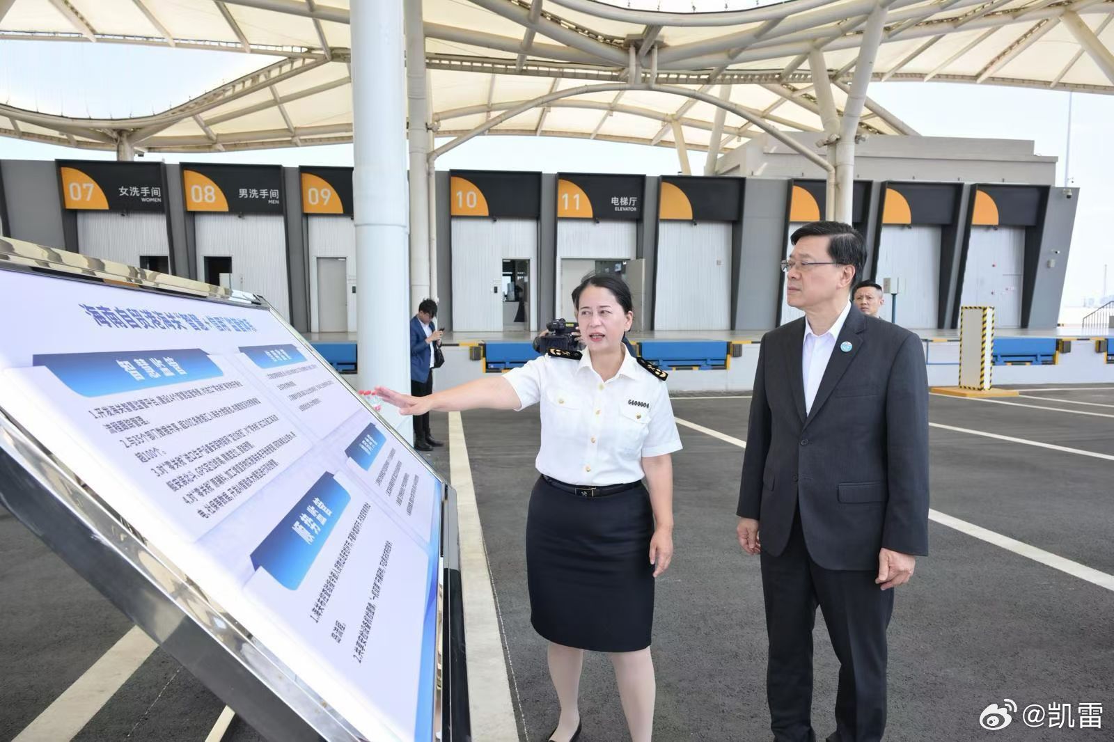 特首李家超、特首办主任叶文娟一行今天先後與海南省和海口市領導會面和交流,並到訪海南高新技術企業和基建設施,包括考察海口新海港和南港“二線口岸”集中查驗場,了解海南自貿港的基礎建設和封關實際運作。