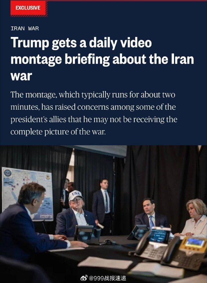 据美国全国广播公司(NBC)报道,美国总统特朗普每天都会收到一份时长为约两分钟的视频剪辑,内容是美国在伊朗境内实施了成功的打击行动——基本上都是爆炸场面和胜利画面。这引发了人们的担忧,担心特朗普可能无法全面了解这场战争的全貌,包括其中的挫折。 此外,特朗普是从媒体报道中得知伊朗对苏丹王空军基地的五架美国加油机发动袭击等事件的。当他询问情况时,被告知损害程度较轻。