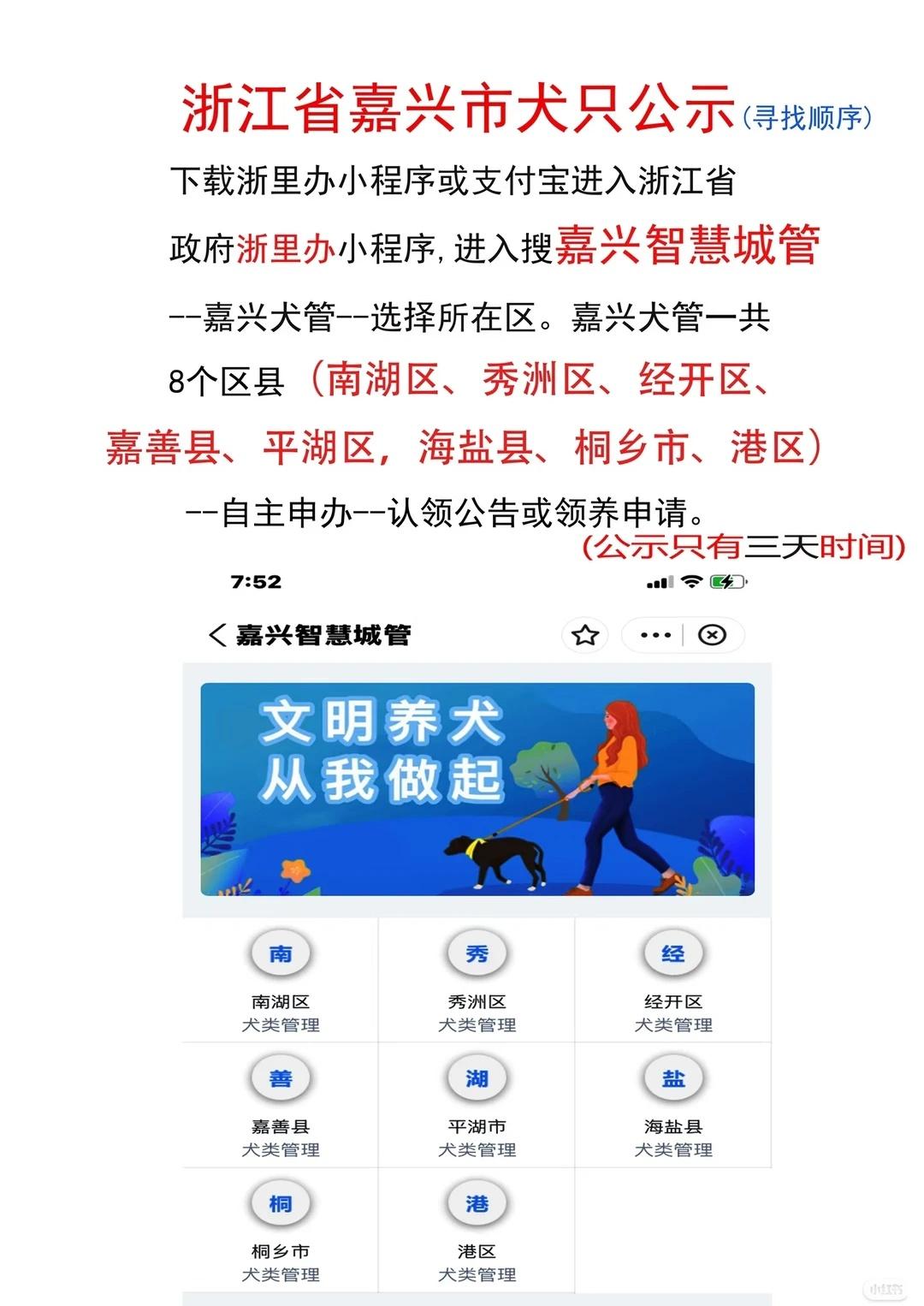 浙江浙里办嘉兴南湖区2026.3.24日犬只公示 嘉兴南湖区寻狗 嘉兴南湖区新增3只狗狗,还有昨天前天4只狗狗要下架了,谁家的阿拉斯加和边牧,只有三天时间 抓捕地南湖区银柳坊小区内,杨柳弯路河东街口,解放街道凌塘社区,十八里西街70号靠近大桥卫生院天平路,新兴街道吉杨路259号,烟雨苑,湘都公寓,锦堂里北门。 那些小狗没人认领真的就没了完了。有能力领养赶紧去领养 嘉兴南湖区找狗进入浙里办小程序或某宝也可以找到,搜索找到嘉兴智慧城管~嘉兴犬管~选择南湖区~自主申办~认领公告。时间紧迫。晚了就没了。浙江省嘉兴市寻狗 南湖区寻狗 嘉兴南湖区 嘉兴南湖狗狗 南湖寻狗