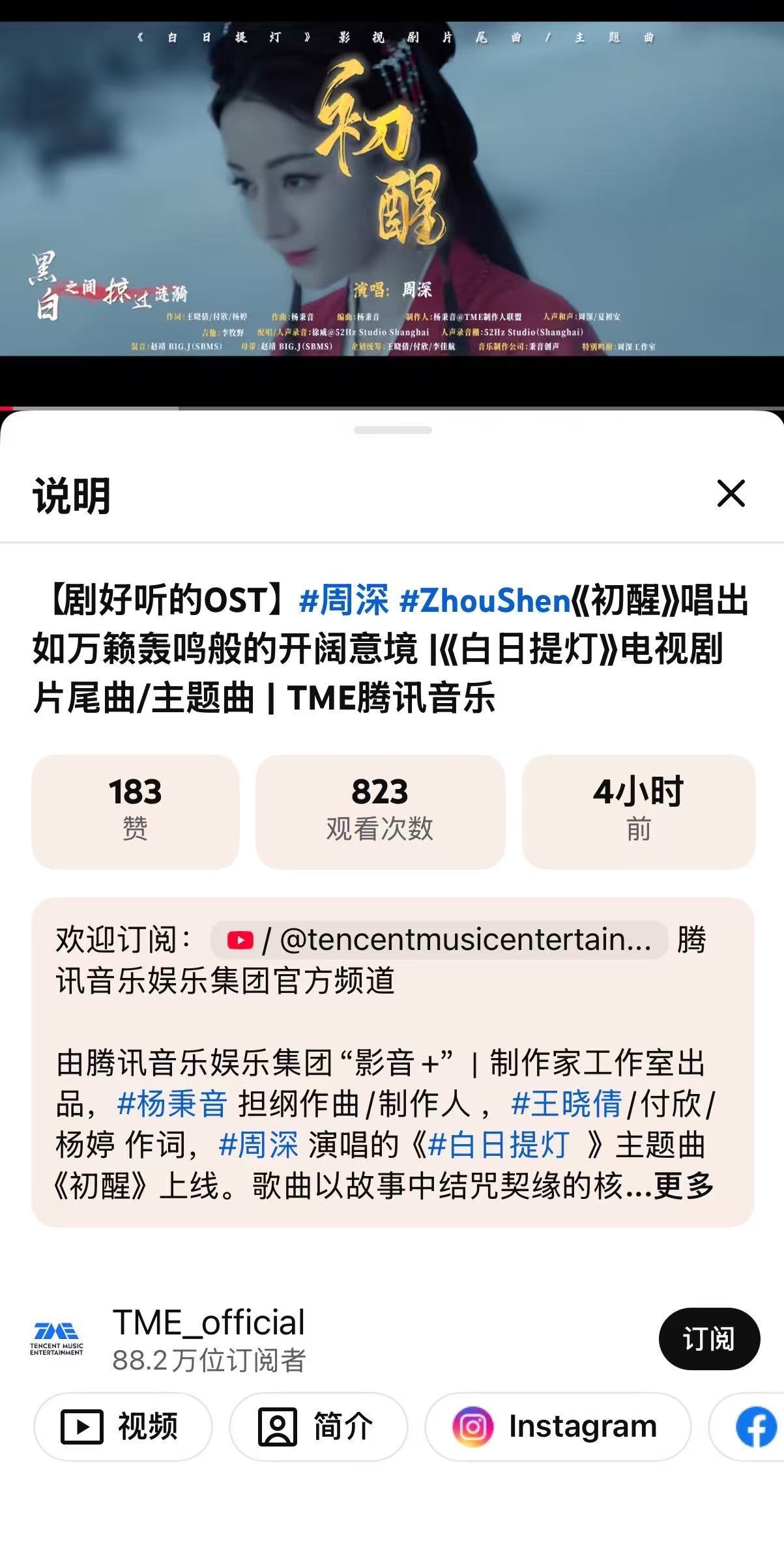 周深 📣3.25 海外平台MV更新📣柿子和TME海外多平台更新深深《初醒》m