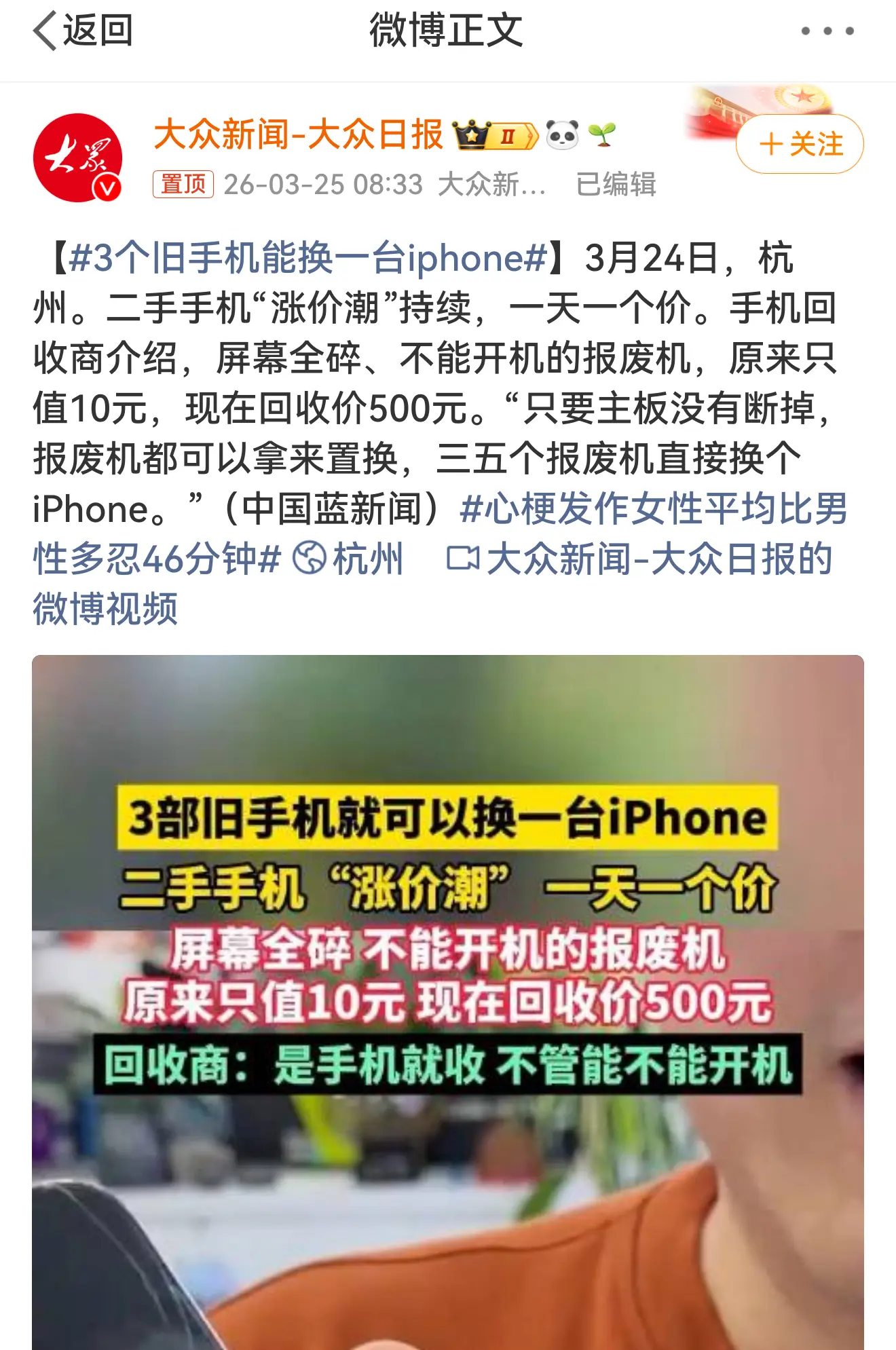 今天刷到热搜说“3个旧手机能换一台iPhone”