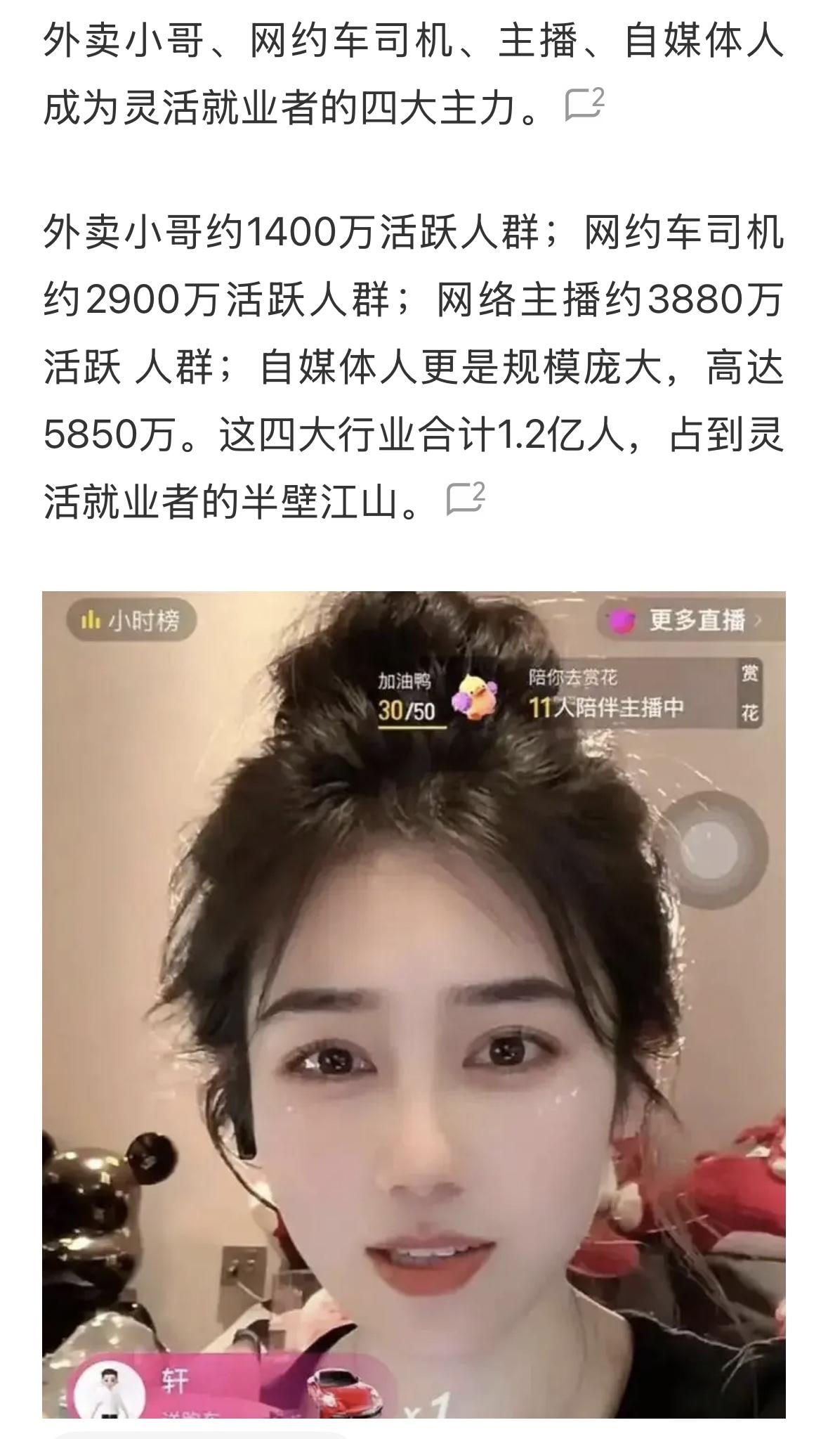 网红主播这个就业,比较脆弱,外卖就业,比较辛苦,所有灵活就业都不太稳定,希望多一些关爱,不要以为灵活就业也是就业,就撒手不管了。
