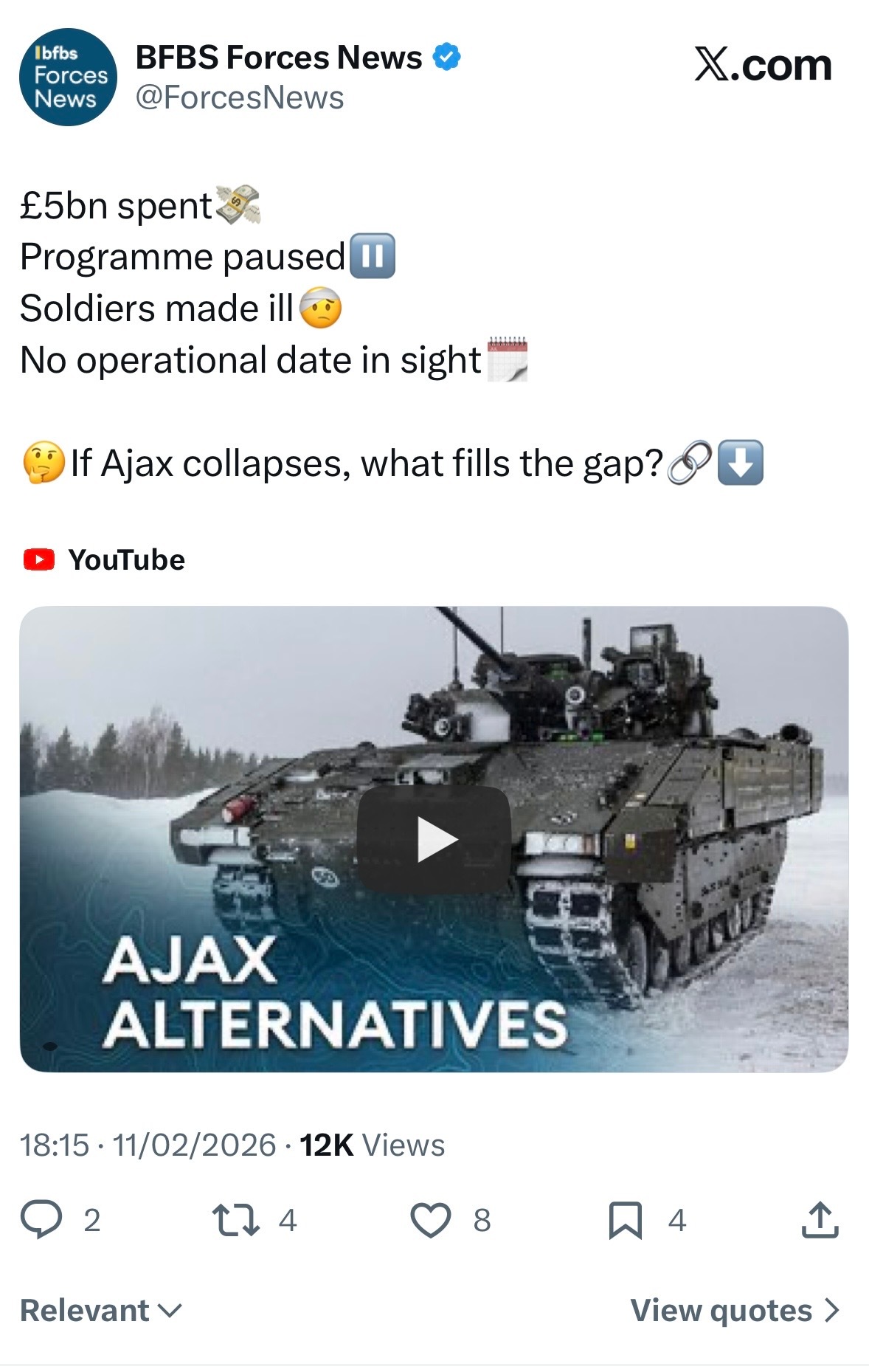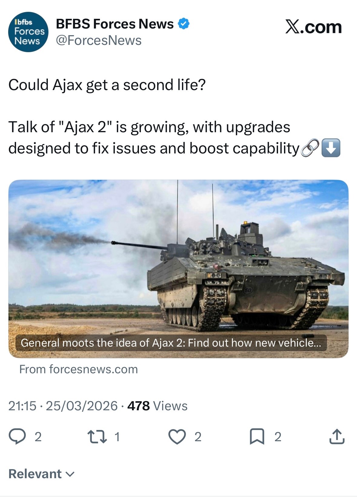 军事ai新视野 AJAX 2(来自英国🇬🇧官方军媒BFBS Force News报道,图1,图2)❓❗️在议会质询中,英国🇬🇧陆军军方发言人提到了AJAX 2。