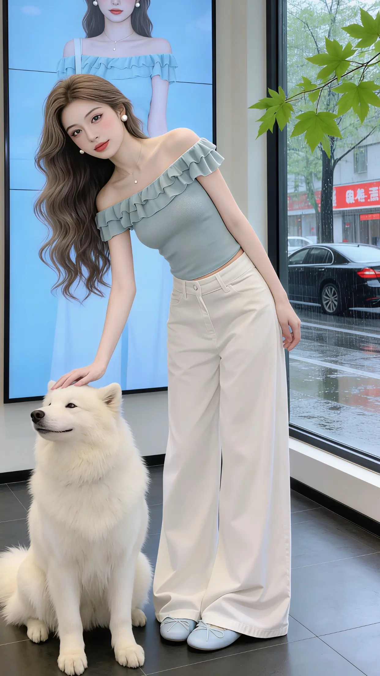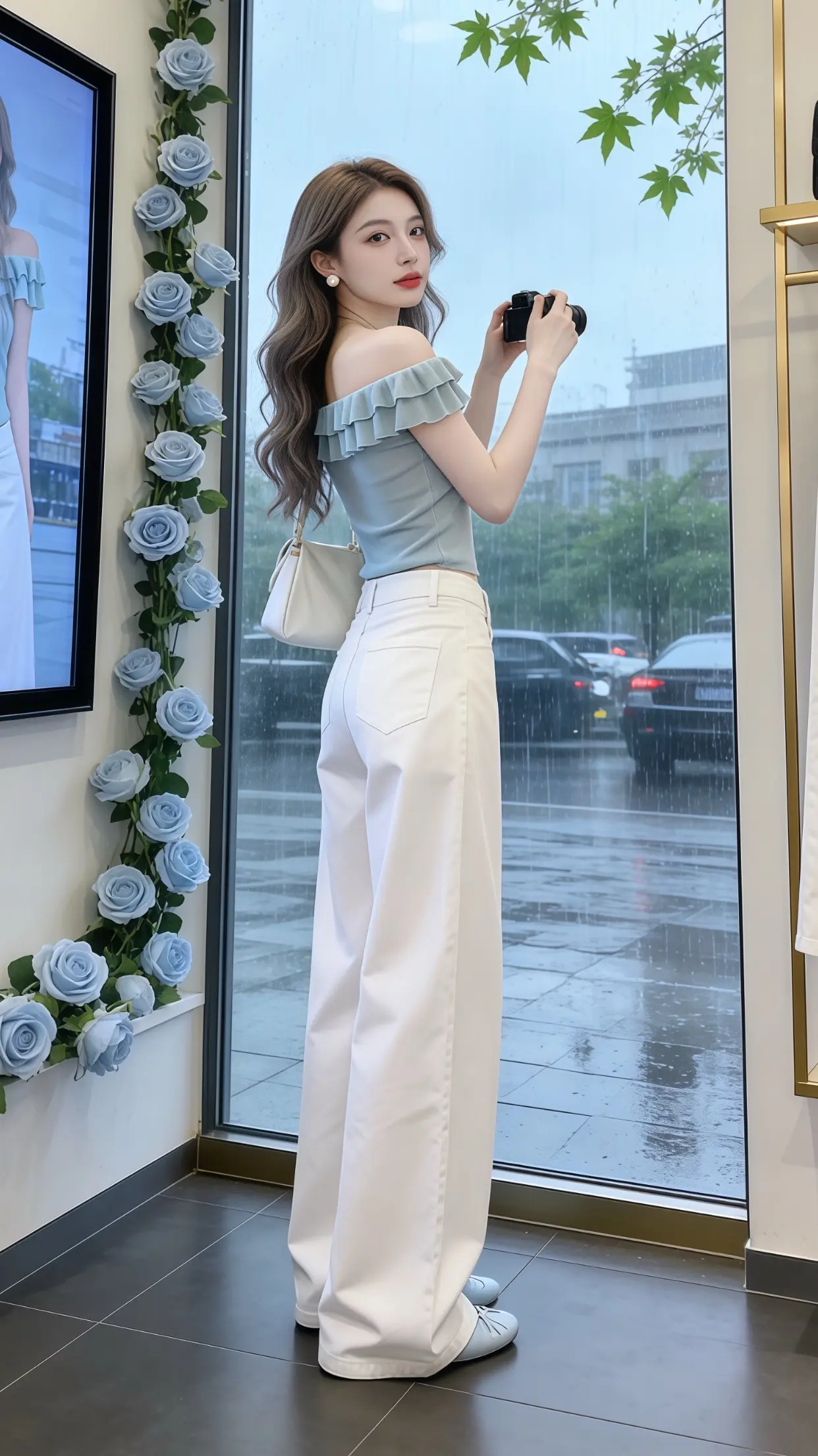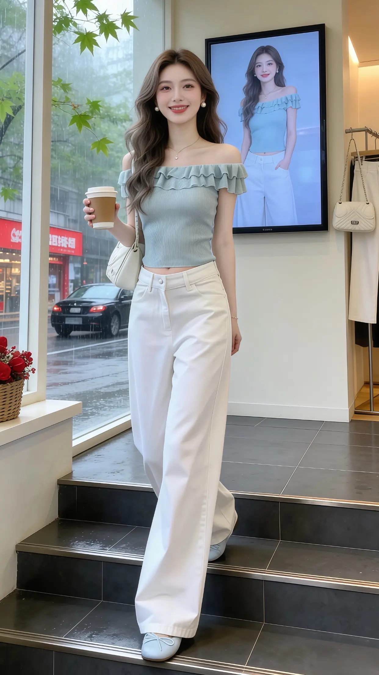 发现你的魅力白色挂脖针织背心搭配高腰牛仔裤,简约又时尚,尽显青春活力与清爽气质