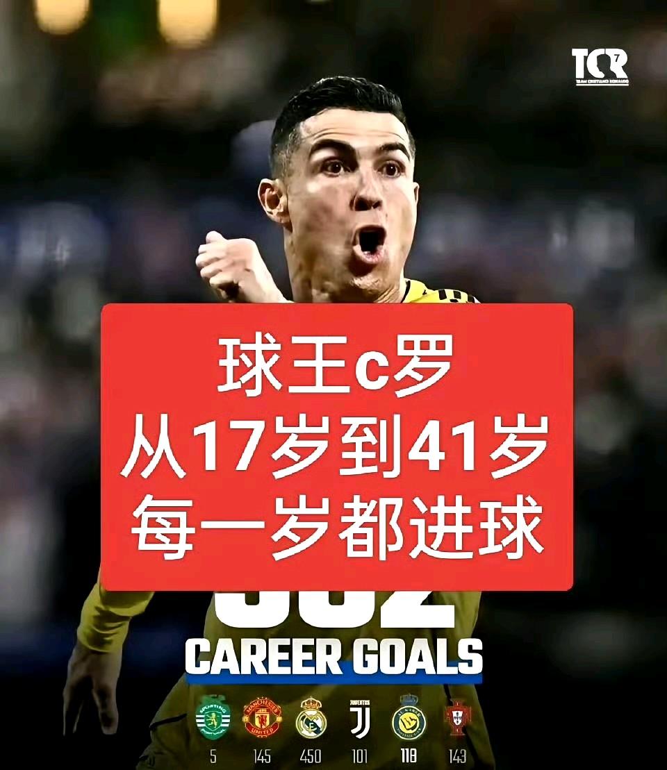 球皇C罗,从17岁到41岁,每一岁都在跳水,每一年都在递增,真乃神人耶!