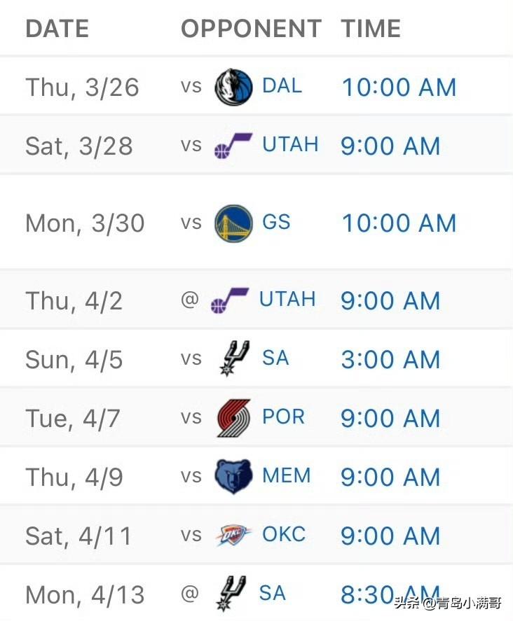 西部第三争夺战白热化!湖人领先1.5场,掘金赛程占优,卡位战即将揭晓! 2025-2026赛季NBA常规赛进入收官阶段,目前各支球队剩余10场左右的比赛,但是往往就是这10场比赛能够决定他们本赛季季后赛的去留,因此争夺进入了白热化阶段。 湖人队是球迷们最关心的球队之一,尽管他们目前排名西部第三,但是不要以为他们稳了,从接下来的赛程看,湖人可是比掘金要难多了。 湖人接下来的10场比赛有四个客场,一次背靠背,而10场比赛中他们还要两次打西部第一的雷霆,以及西部第七的太阳和东部第四的骑士,当然还有一支不服输的勇士。 掘金接下来有9场比赛,对手全部是西部球队,其中只有两个客场,没有背靠背比赛,他们要打一次雷霆,两次马刺,一次勇士,和一次开拓者。 从详细赛程对比来看,掘金更占有优势,而目前湖人仅领先掘金1.5个胜场,差距并不大,稍有大意就可能存在被反超的风险。 所以谁最终能成为西部第三还很难说,要到最后才能见分晓了。湖人 湖人队