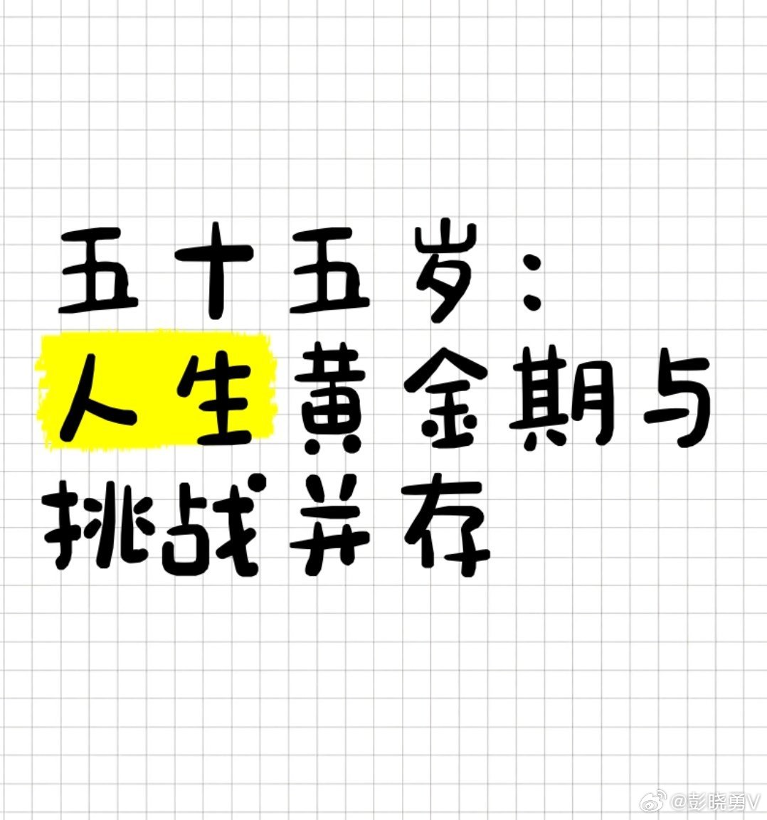 彭晓勇说《五十五岁人生命运的分水岭》人生命运苦不苦,就看年龄五十五。五十五岁是人生的分水岭,上半场已经过去,下半场才刚刚开始。到了五十五岁,人的事业达到顶峰开始走下坡路,人的健康也达到了亚健康的谷底。一手托着健康,一手抓着事业。自身健康是家庭幸福的源泉,事业发展是家庭幸福的延续。事业、家庭、健康,孰重孰轻自己好好掂量[跳跳][跳跳][跳跳]祝愿我朋友圈的亲朋好友们平安喜乐,健康幸福