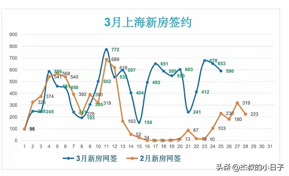 继续稳!上海昨天二手房成交突破1000套! 3月份,工作日二手房成交新高。 昨天3月26日,上海楼市二手房突破1014套,这可是平常日,这个数据放在整个三月份。也是平常日的新高! 平常日二手房成交过1000的,只有3月2日1012套,3月20日1013套。 所以,不要再动不动就,上海楼市已经开始下坡路了,高峰期已经过去了! 楼市的回暖是要看一个周期的。这个周期,目前来看就是三月份,整个三月份。 基本上可以判定,小阳春无异议!