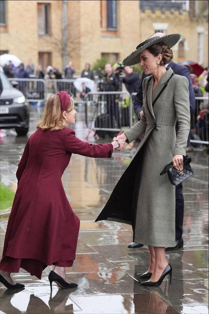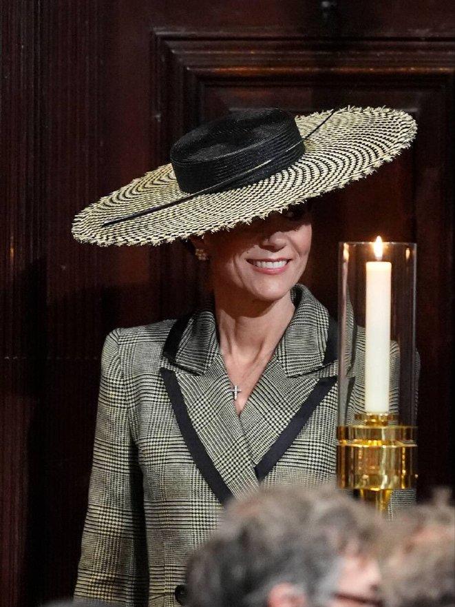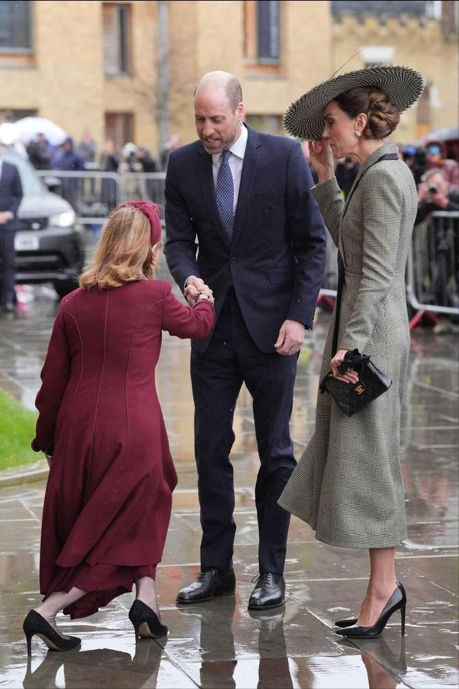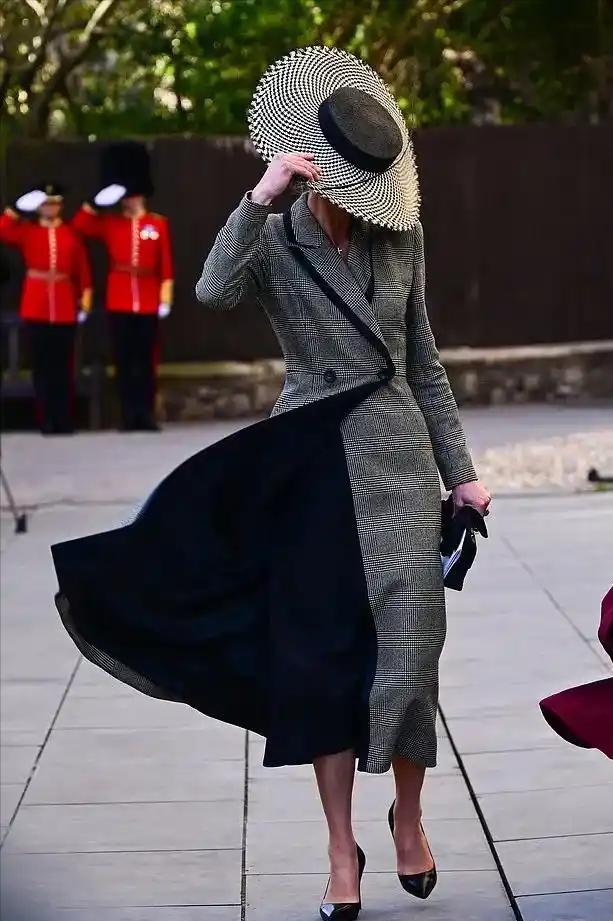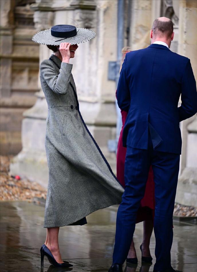 威尔士亲王夫妇@坎特伯雷大教堂[送心] 夫妻俩代表老查参加坎特伯雷大主教就职典礼, 见证史上首位女主教并衷心恭贺。 教堂门口的风极大,差点吹落凯特的新礼帽, 灰色镶边的长大衣是新的,挽起的发髻如同艺术品[心]