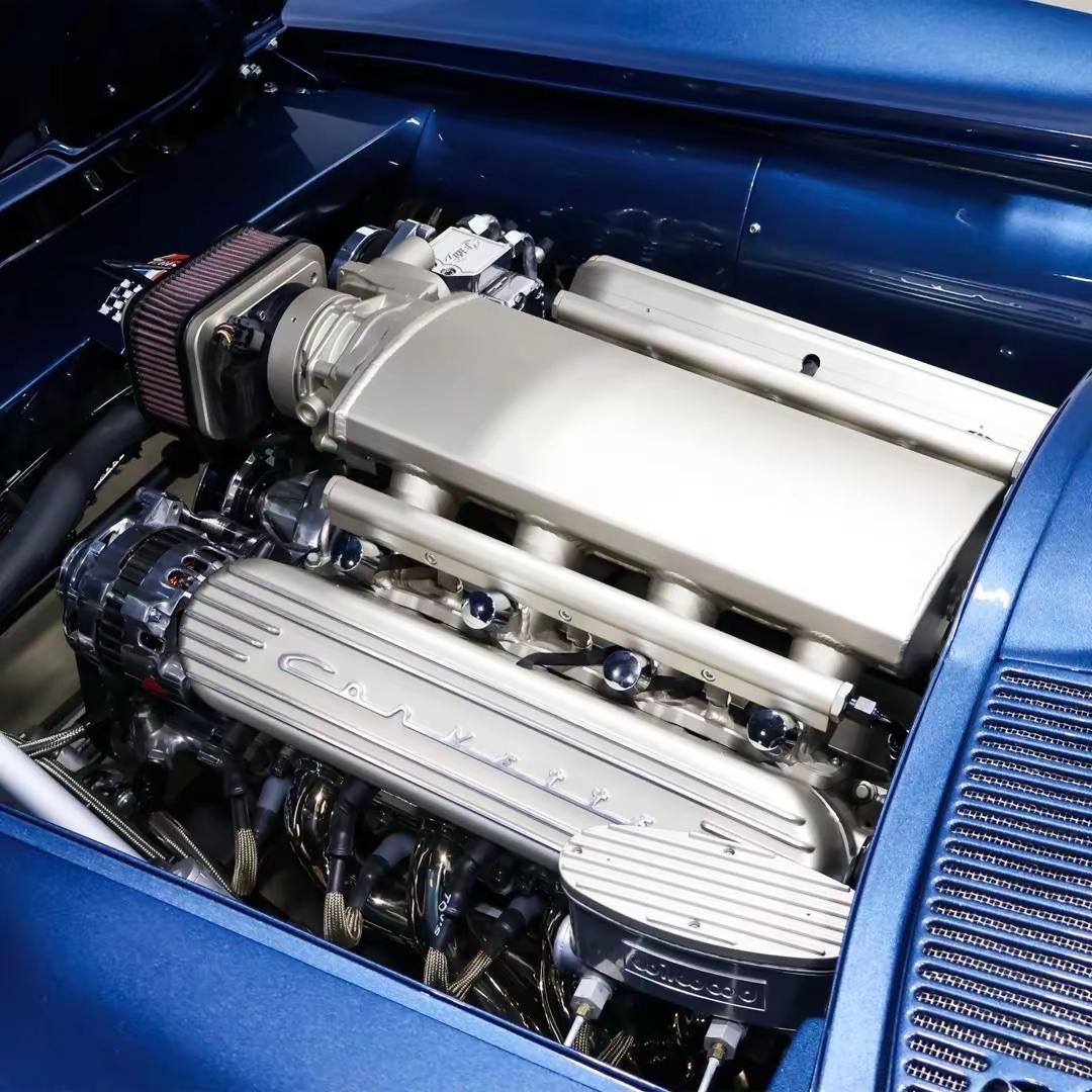 这台1963年雪佛兰Corvette分体式后窗双门跑车,是对经典美式性能的一次当代重构。原本诞生于美式肌肉文化萌芽期的它,如今被赋予全新灵魂:6.2升LS3 V8发动机(约6162毫升排量)带来更线性且充沛的动力输出,匹配四速自动变速箱,在性能与日常可控性之间取得平衡。整车基于Art Morrison定制底盘打造,结合强化整体桥、前后双横臂与螺旋减振结构,以及齿条齿轮转向系统与Wilwood四轮盘刹,使操控表现远超原始年代设定。外观采用Mediterranean Sky车漆,配合侧出排气、电动开启机盖与标志性的翻灯设计,在复古轮廓中注入更强的机械张力;20英寸Schott轮圈进一步强化了整车姿态。内饰则以Capri Sand色调为主,辅以柚木方向盘、Classic Instruments仪表与碳纤维饰板,Vintage Air空调系统与复古风格音响在情怀与实用之间建立连接。1963年的Corvette象征着美国性能车黄金时代的开端,而这台由2025年完成的定制作品,则像是一种跨越时间的对话——它不仅复刻记忆,更用现代工程重新定义了经典应有的速度与质感。科尔维特 汽车知识分享 经典情怀老车 汽车人共创计划