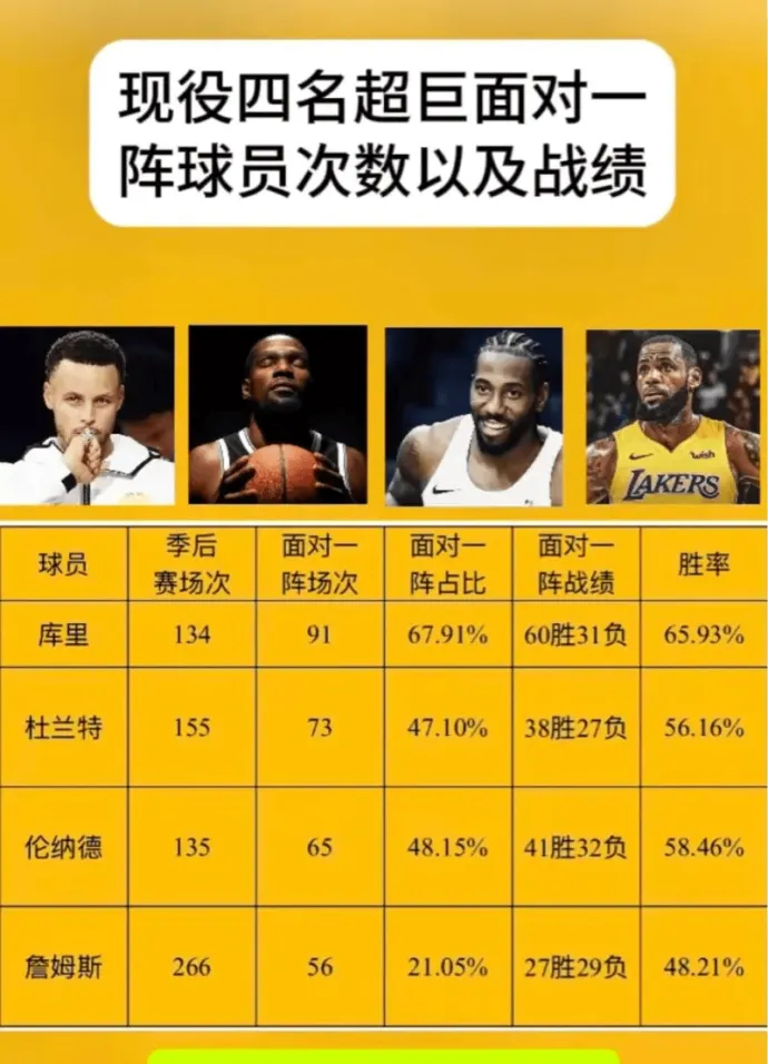 现役四名超巨面对一阵球员的次数和战绩