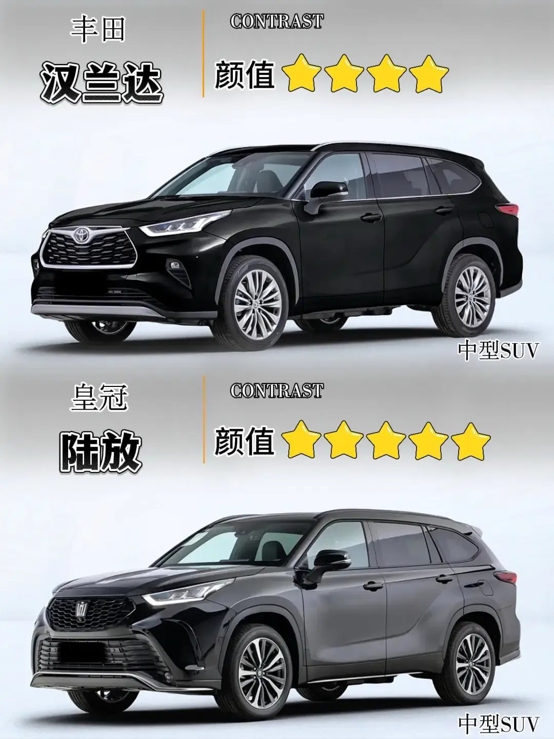 汉兰达 对比 皇冠陆放。同级别 同价位,谁更胜一筹?