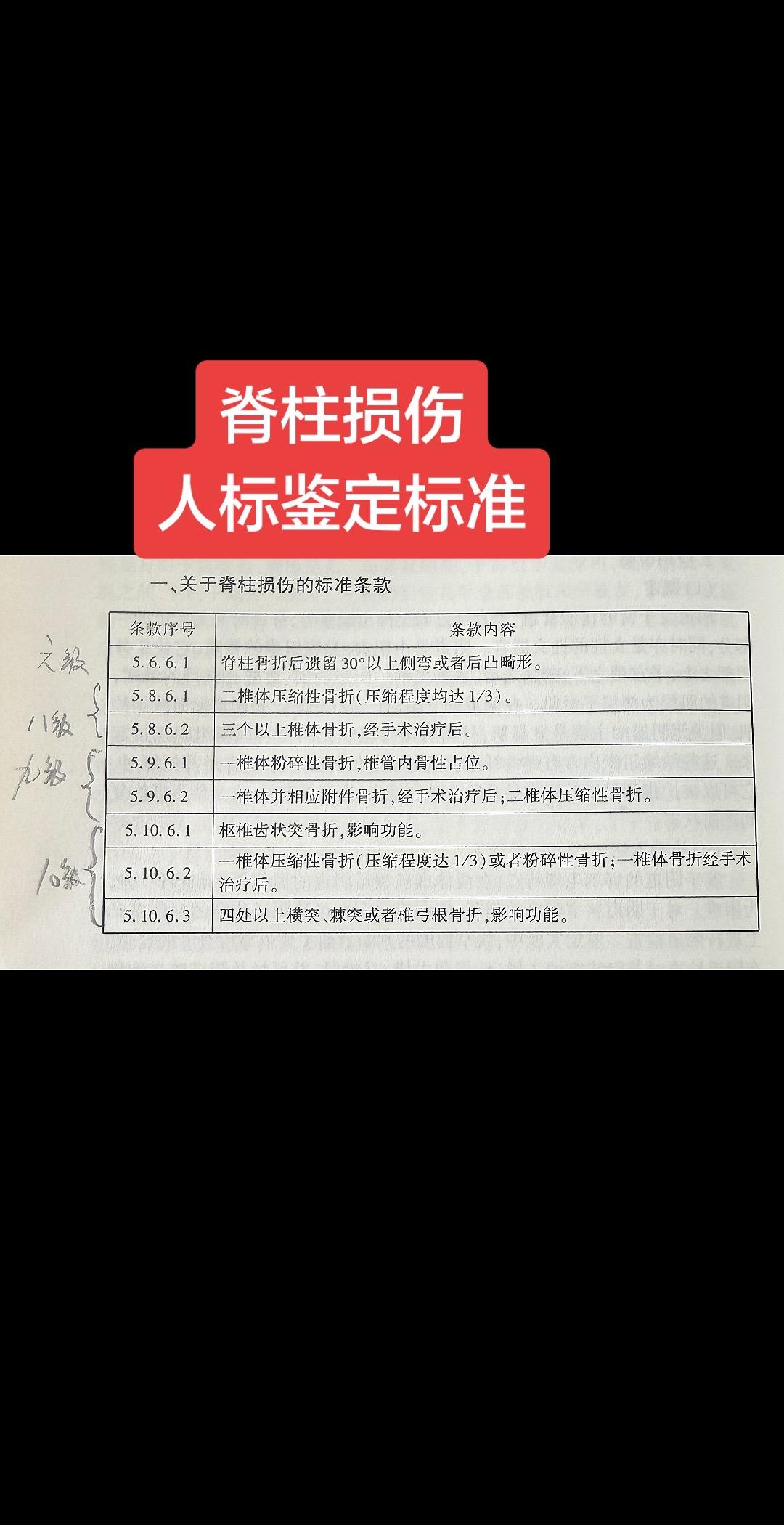 学习笔记,常见脊柱、椎体损伤人标鉴定标准。宁波交通事故律师 宁波工伤律师 宁波吴