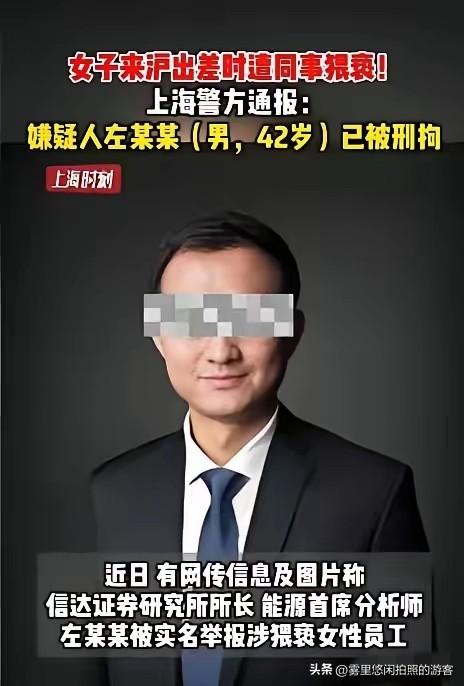 上海,某研究所所长带着女下属出差时猥亵了女下属,还对女下属说:“只要打一针就好”,吓得女下属奋力反抗。好在当时酒店的保安及时解救,女子逃跑后才得以报警。目前,警方已将该所长抓获并刑拘,研究所也暂停了所长的一切工作,并配合调查。 这位所长可不是什么无名之辈,他是信达证券的研究所所长、能源首席分析师,头顶着金融圈的光环,手里握着行业话语权,本该是专业与操守的标杆,却在出差的酒店房间里,把权力当成了侵犯他人的筹码。那句轻佻又恶毒的“打一针就好”,撕开了职场权力霸凌最丑陋的一面——上位者把下属的顺从当成理所当然,把私密的出差环境当成作恶的温床,连最基本的人格尊重都抛到了九霄云外。 金融圈向来讲究体面,可这位所长的行为,连最基本的体面都碎成了渣。他赌的是女下属不敢反抗,赌的是职场层级能压垮对方的勇气,赌的是行业名声能掩盖龌龊。可他忘了,再光鲜的头衔也遮不住犯罪的事实,再强势的地位也挡不住受害者的反抗。女下属没有忍气吞声,拼尽全力挣脱,酒店保安没有视而不见,及时出手制止,这才没让恶人得逞,也让这场职场侵害暴露在阳光之下。 职场从来不是法外之地,更不是权力寻欢的后花园。这位所长的刑拘,给所有手握权力的管理者敲响了警钟:职位越高,越要守住底线,越要懂得敬畏。你可以决定下属的绩效,却不能决定她的身体;你可以主导项目的方向,却不能主导他人的意愿。任何试图用权力胁迫他人的行为,最终都会让自己身败名裂,付出沉重的代价。 研究所的快速反应,警方的果断行动,都在传递一个明确的信号:职场侵害零容忍,无论你是谁,无论你有多少光环,只要触碰法律红线,就必须接受制裁。那些藏在西装革履下的龌龊,终究会被阳光晒得无处遁形。 各位读者你们怎么看?欢迎在评论区讨论。
