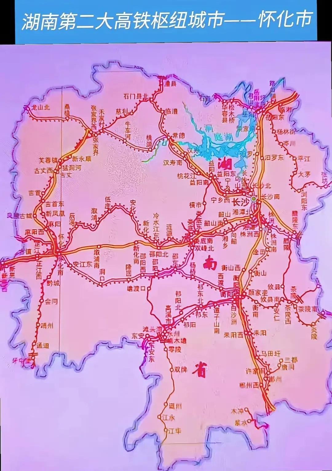 湖南除了长沙,还有哪几个全国性高铁枢纽? 湖南除了长沙,还有怀化、衡阳2个全国性高铁枢纽,其中长株潭都市圈作为整体被列为全国性综合交通枢纽。 另外永州和常德正在逐步成为省域区域性铁路枢纽城市。 1.衡阳 枢纽地位:衡阳素有“中南交通咽喉”之称,是京广高铁和怀邵衡铁路的交汇点,同时通过联络线连接衡柳铁路,是连接湘南与华南,以及沟通湘中南与广西的重要枢纽。 主要车站:衡阳东站是特等站。 2.怀化 枢纽地位:怀化地处湘黔渝桂四省交界,怀化南站是沪昆高铁非省会城市规模最大的高铁站,张吉怀高铁通车后进一步强化其“西部陆海新通道东线主通道”地位,已成为湖南西部的高铁“桥头堡” 。 形成了连接湘西与西南、华南地区的关键十字枢纽。远景规划:怀桂高铁(中长期)、怀永高铁(前期研究)将实现南下广西的大通道。 主要车站:怀化南站是特等站。 3.永州 从当前规划和建设进展来看,永州的高铁枢纽地位正在快速跃升。它是“八纵八横”中呼南通道的重要节点,永清广高铁今年预计开工建设,实现湖南第二条南下广州的高铁新通道,另外规划东西向兴永郴赣高铁。 作为湘西北门户,常德的高铁规划迎来历史性突破,当前已形成“一横一纵”高铁格局,并有多条关键线路在建或规划中,坐拥渝厦高铁和呼南高铁两条大动脉,未来将深度融入国家“八纵八横”高速铁路网。 补充说明: 株洲是传统的铁路枢纽(普铁时代的重要枢纽),但在高铁时代,其枢纽功能很大程度上被长沙南站吸纳和覆盖,目前其高铁枢纽地位已不如上述城市突出。