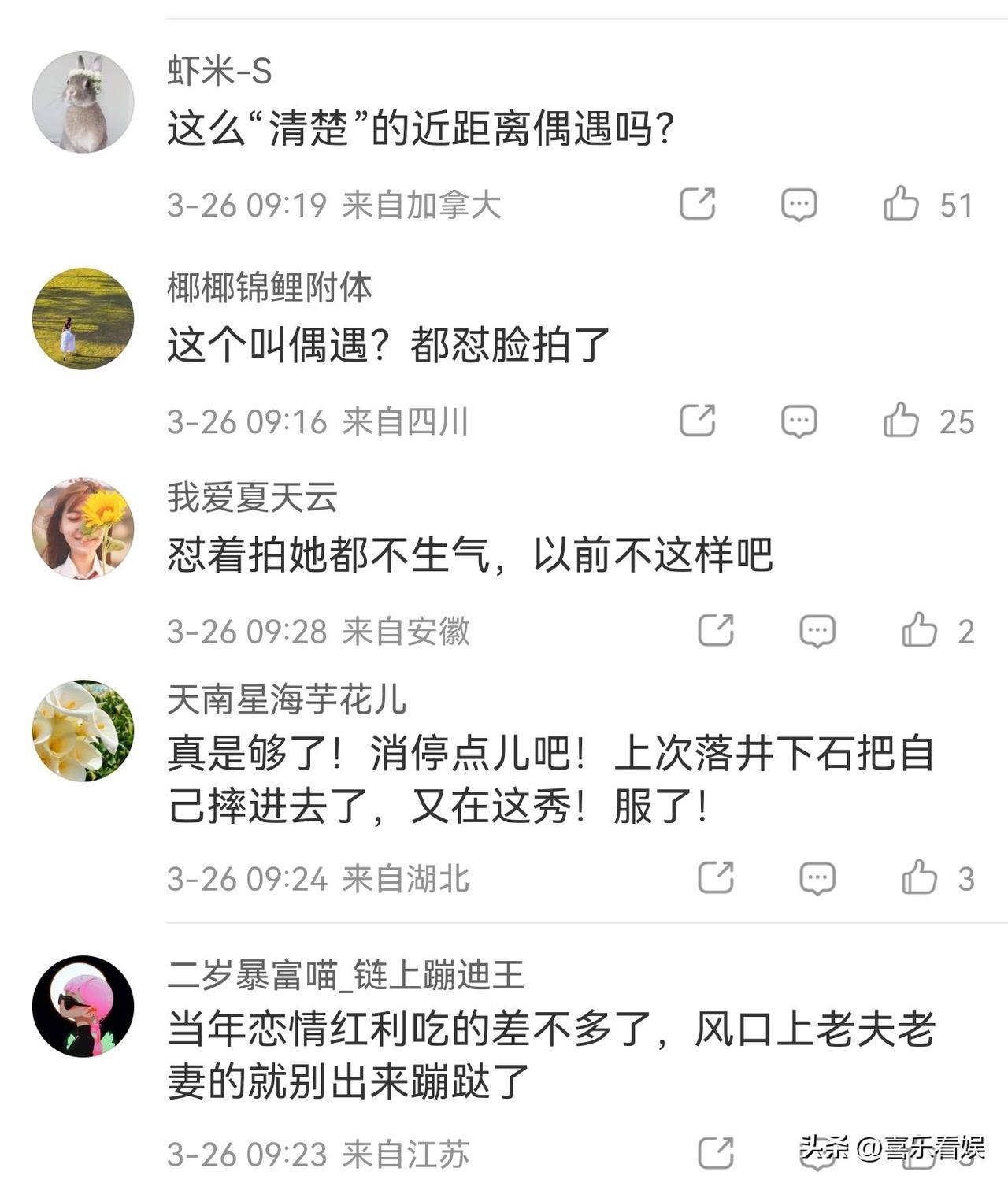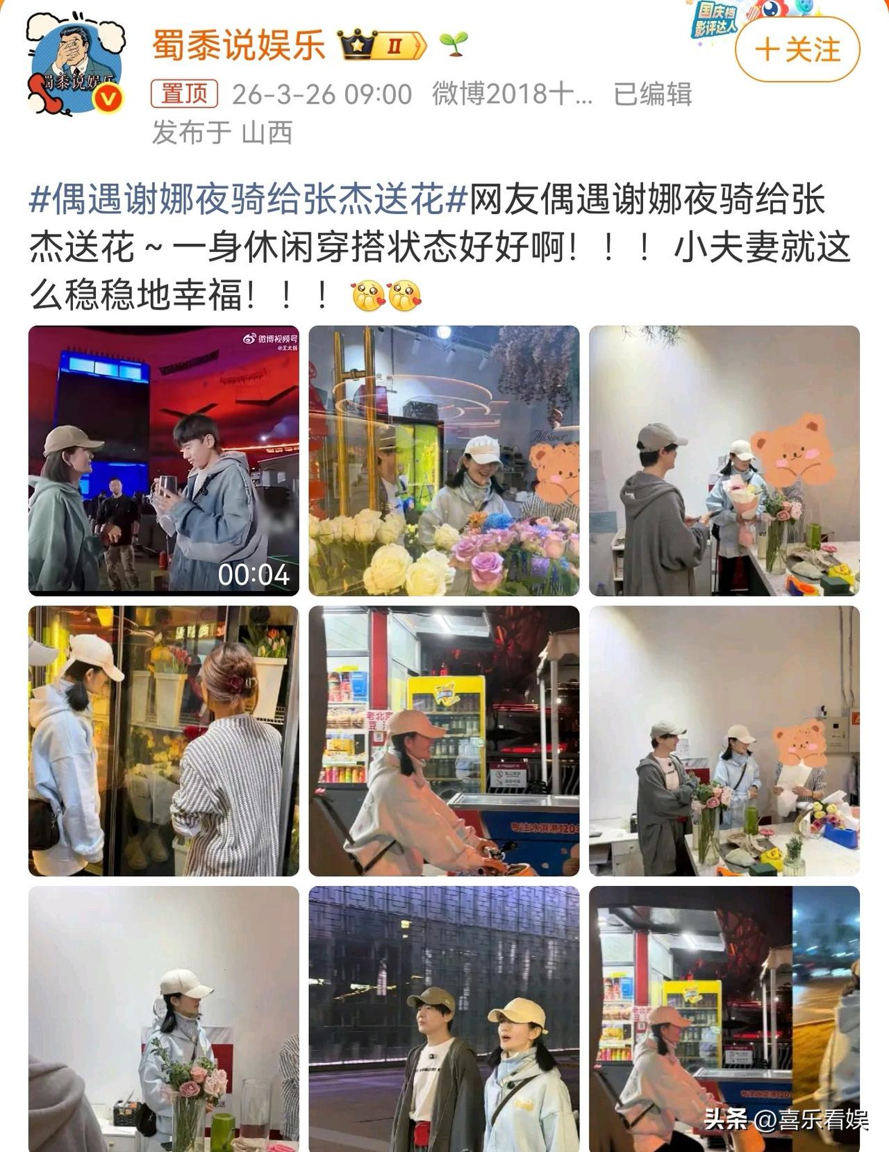 谢娜,这次被网友骂惨了! 3月26日早上,谢娜又冲上了热搜,原因是她夜骑为正在为演唱会彩排的老公张杰送花,本来是个撒糖的小事,没想到却被网友骂惨了。 有网友晒出偶遇画面,谢娜穿着浅蓝连帽卫衣、棒球帽,扎着双马尾。 她先在花店里精挑细选,包了一束粉粉的玫瑰花,之后骑着一辆带藤编小筐的自行车,说是要去给张杰送花。 可这组图被放出来后,网友们根本不买账,评论区全是质疑和吐槽: 有人质疑说:“这么‘清楚’的近距离叫偶遇吗?都怼脸拍了”,觉得根本是刻意摆拍。 还有人吐槽说:“怼着拍她都不生气,以前不这样吧”。 更有翻旧账的网友:“真是够了,消停点儿吧,上次落井下石把自己摔进去了,又在这秀,服了!”“当年恋情红利吃的差不多了,风口上老夫老妻的就别出来蹦跶了”。 怎么说呢,谢娜和张杰也算是娱乐圈里的模范夫妻,这种深夜送花的小浪漫本来挺戳人的。 可这次因为拍摄角度太近、画面太“精致”,所以很多都觉得是摆拍,连带着以前的争议都被翻出来骂。 明星的小确幸一旦放到镜头下,就容易变味,到底是真的夫妻恩爱,还是为了流量演出来的,网友心里都有杆秤。 这次谢娜被骂,也算是给明星们提了个醒,别拿观众当傻子,真感情不用刻意秀,假浪漫迟早会被拆穿。 对此,你们怎么看?
