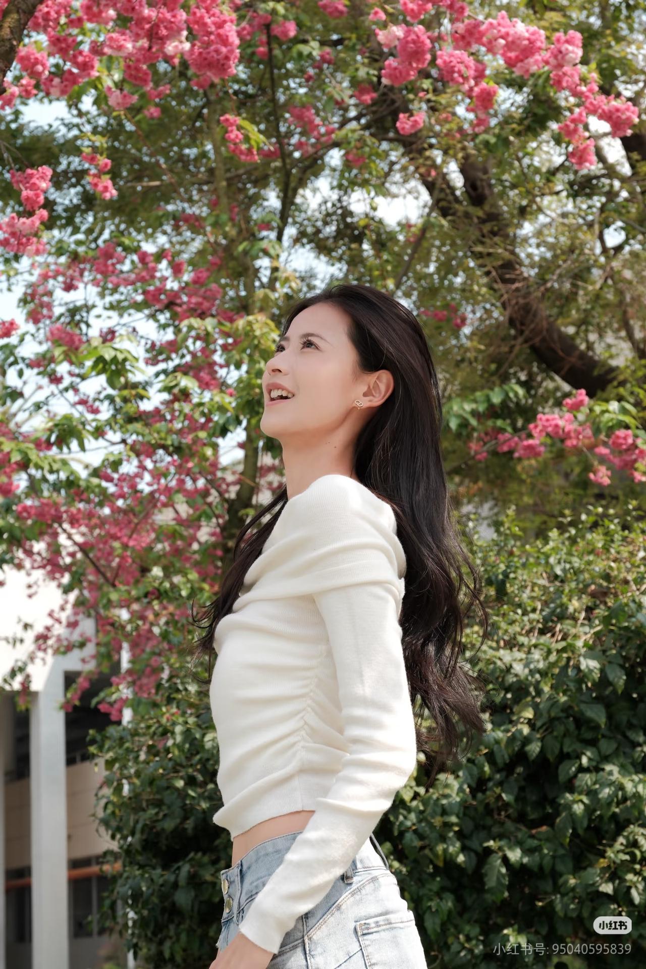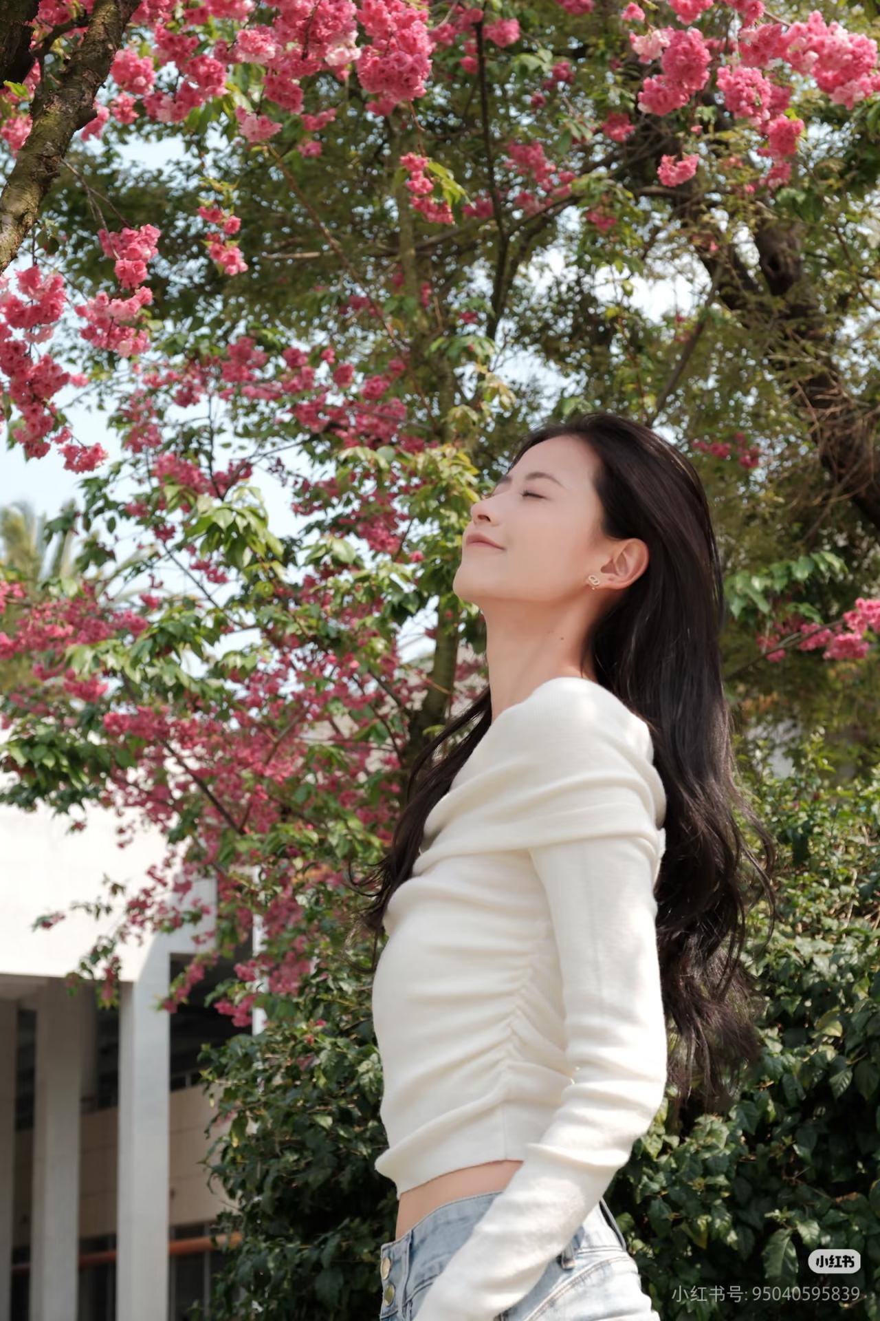 春日暖阳下,粉裙少女静坐花丛中,温柔如水。