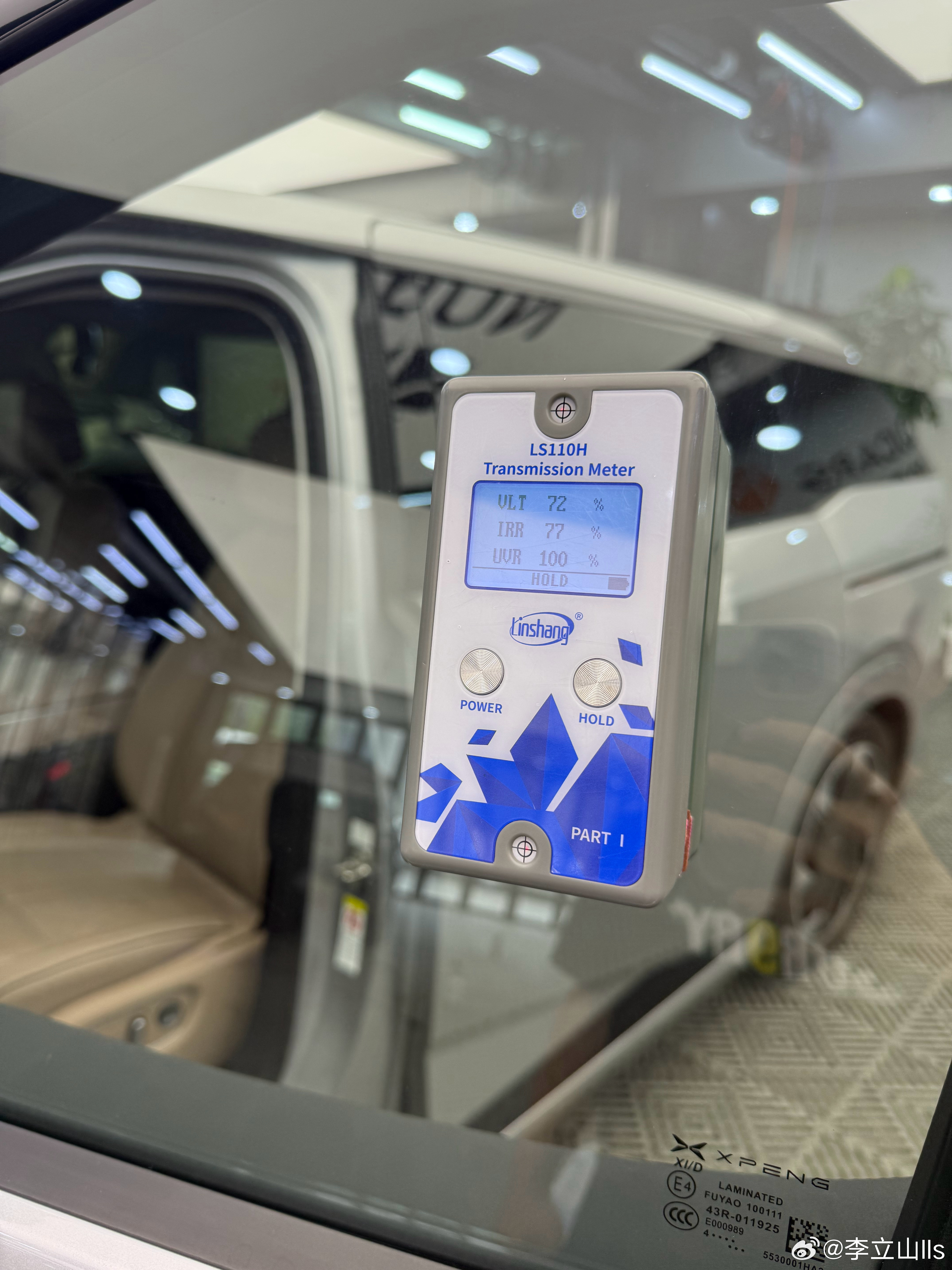 原来撕完膜,裸奔状态,小鹏X9原厂玻璃都是刚刚过70%透光,仅仅达标! X9原厂玻璃用料不错,顶得下!