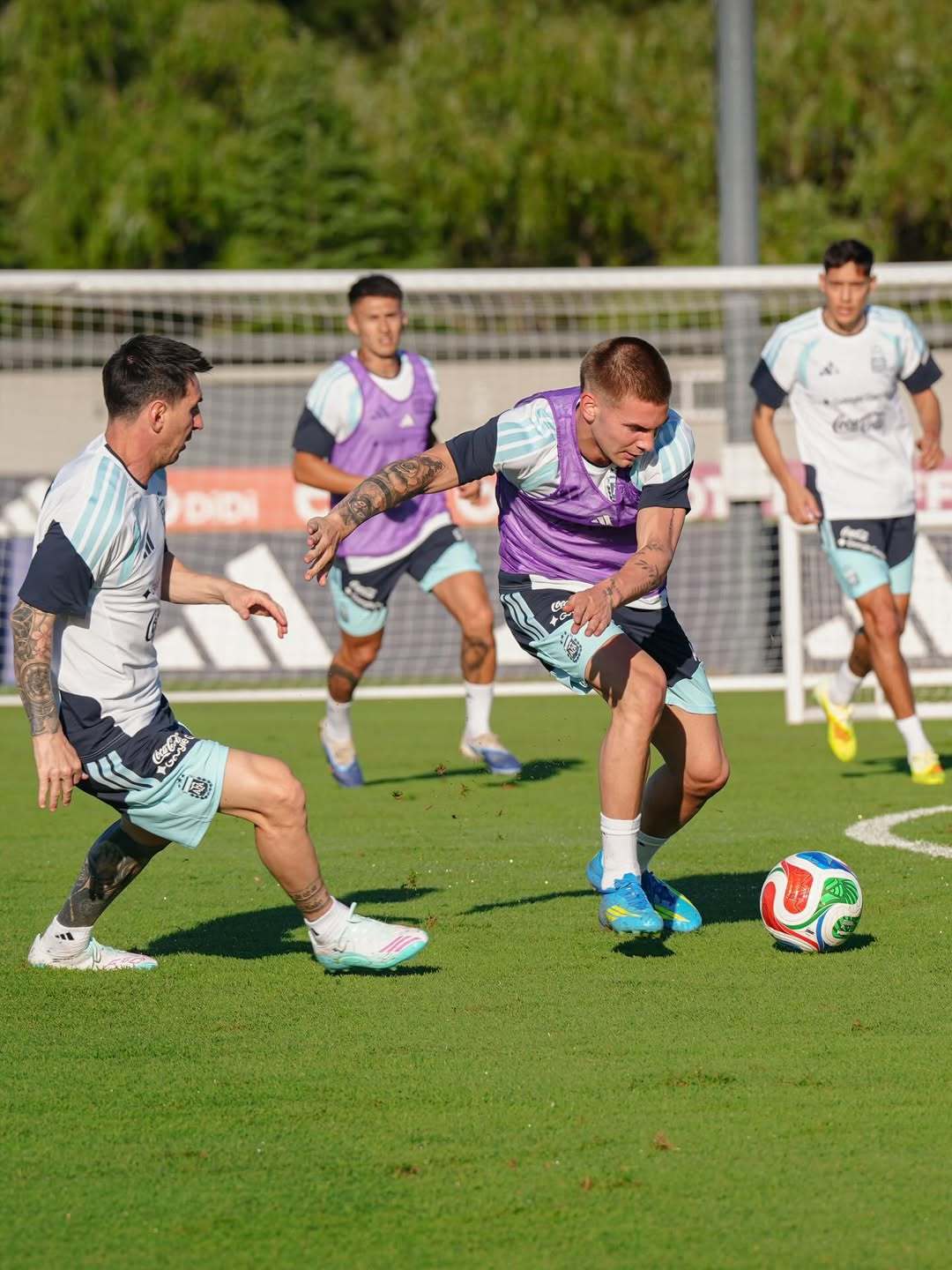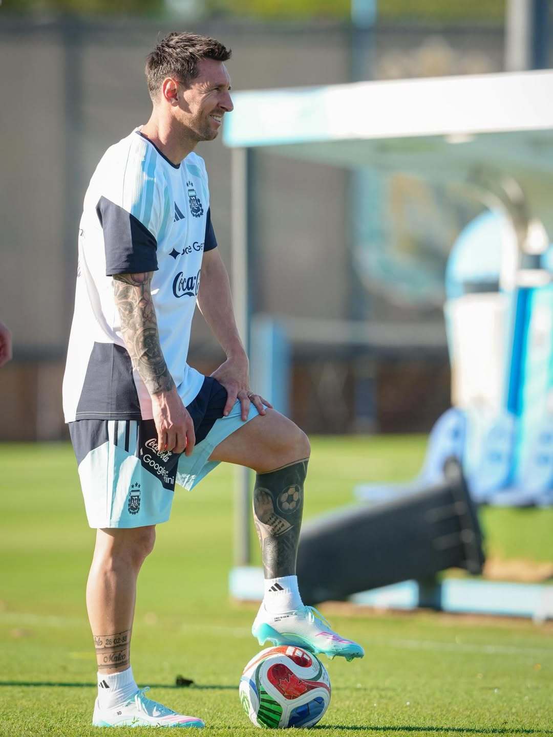 梅西在今天的训练。阿根廷vs毛里塔尼亚世界杯