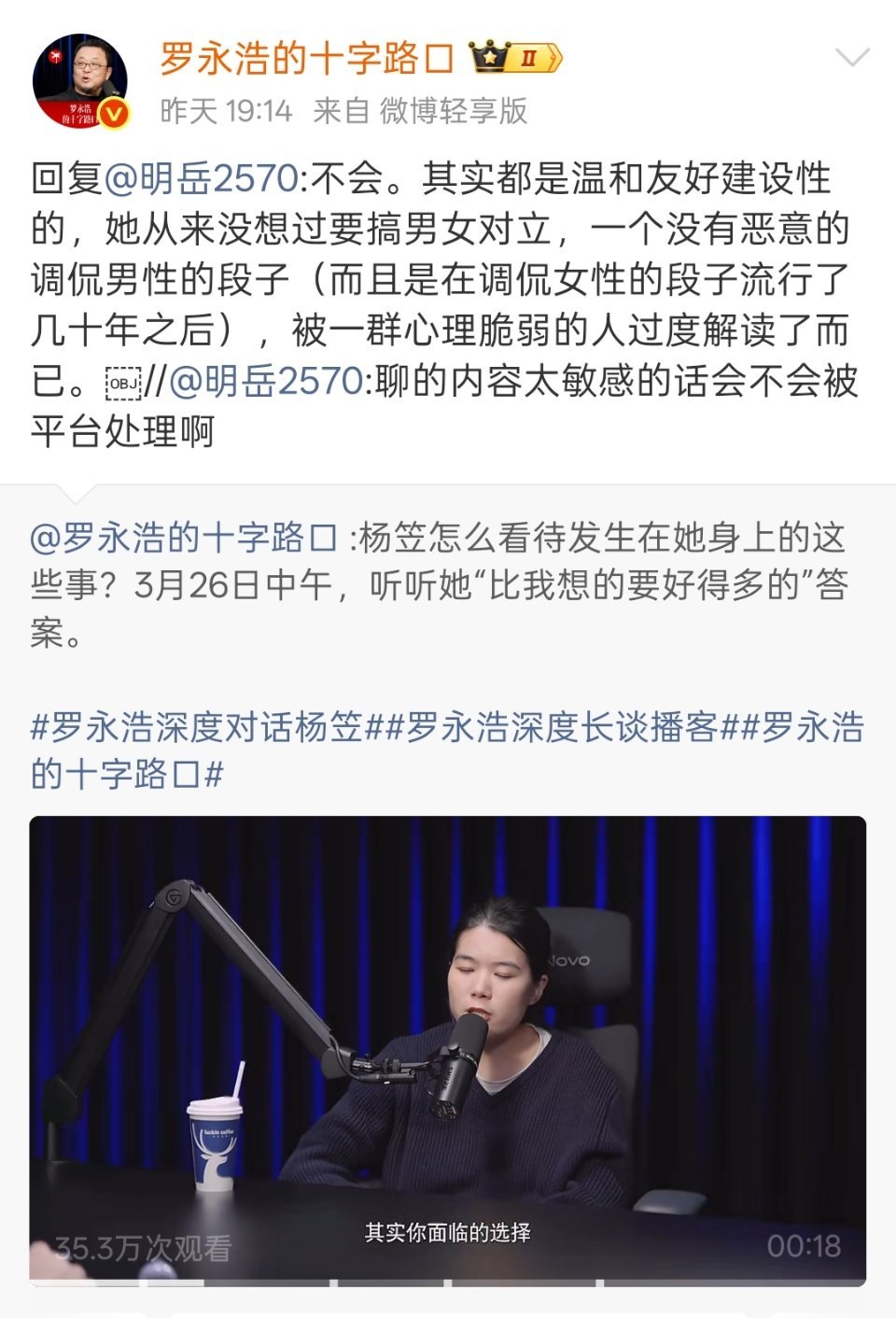 罗永浩:杨笠从来没想过要搞男女对立,她的段子被过度解读了。