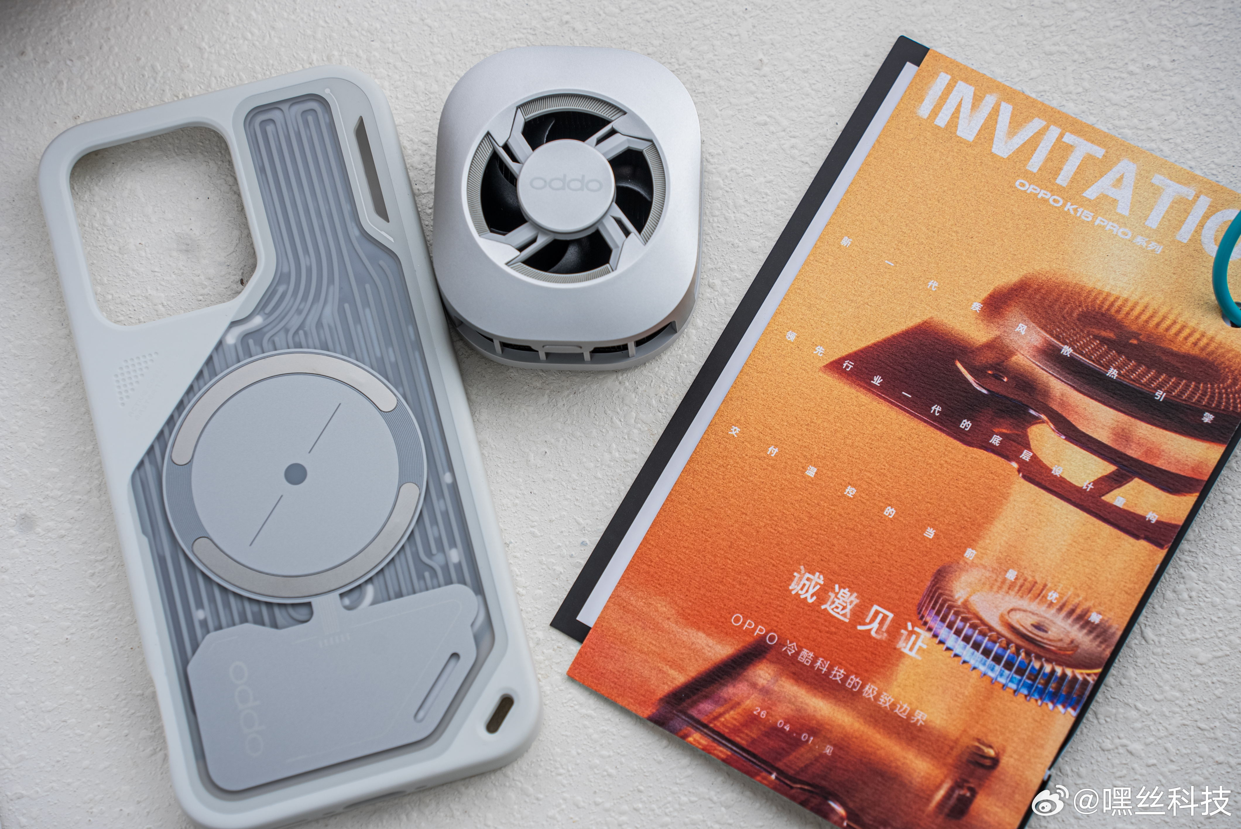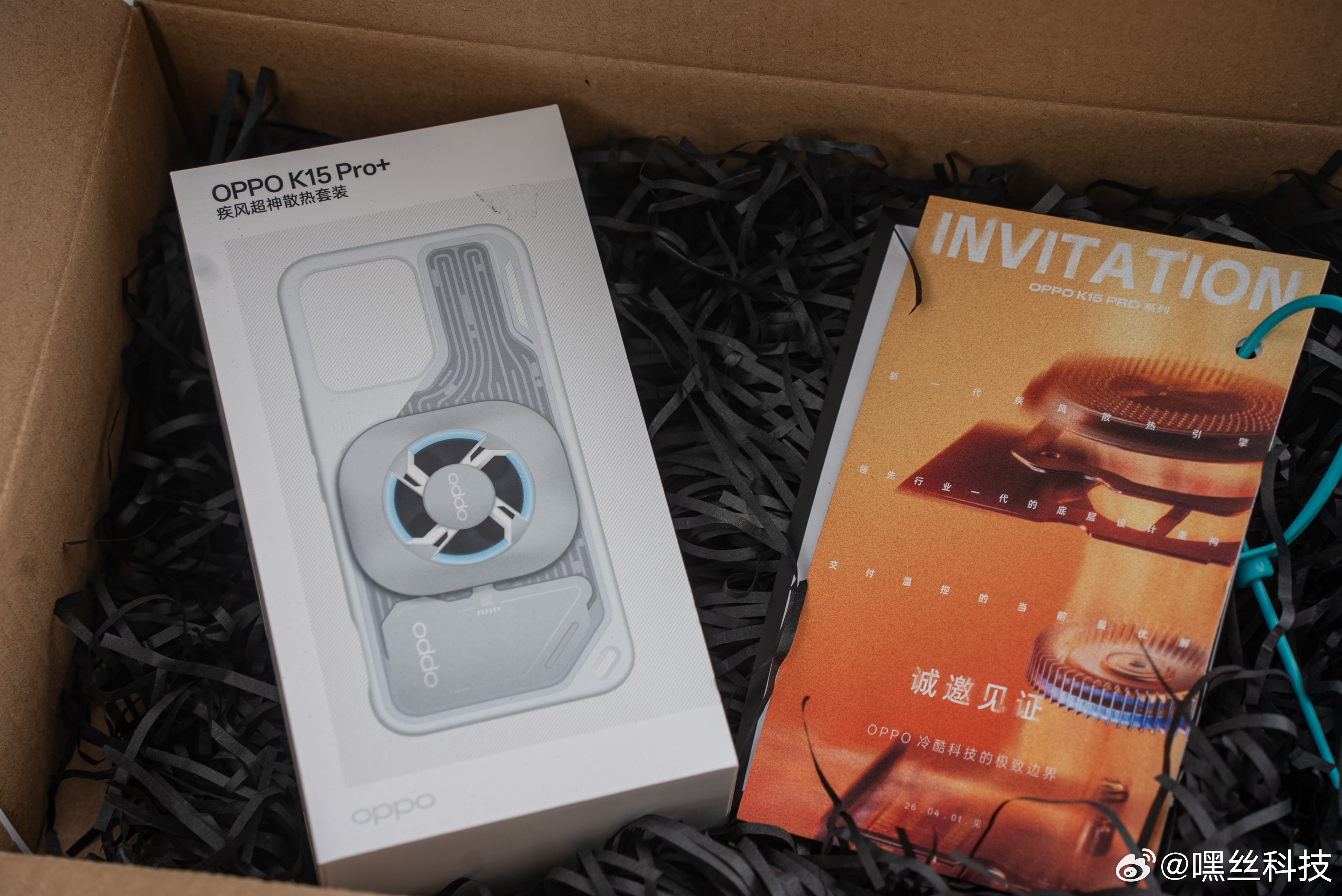 收到OPPO K15 Pro的邀请函啦~居然是OPPO 联合得物的特别打造,这次的主题是冷酷科技,打开就看到OPPO K15 Pro专属的疾风超神散热套装,是主动散热风扇 + 液冷散热手机壳组合,有点期待4月1日的新品发布了