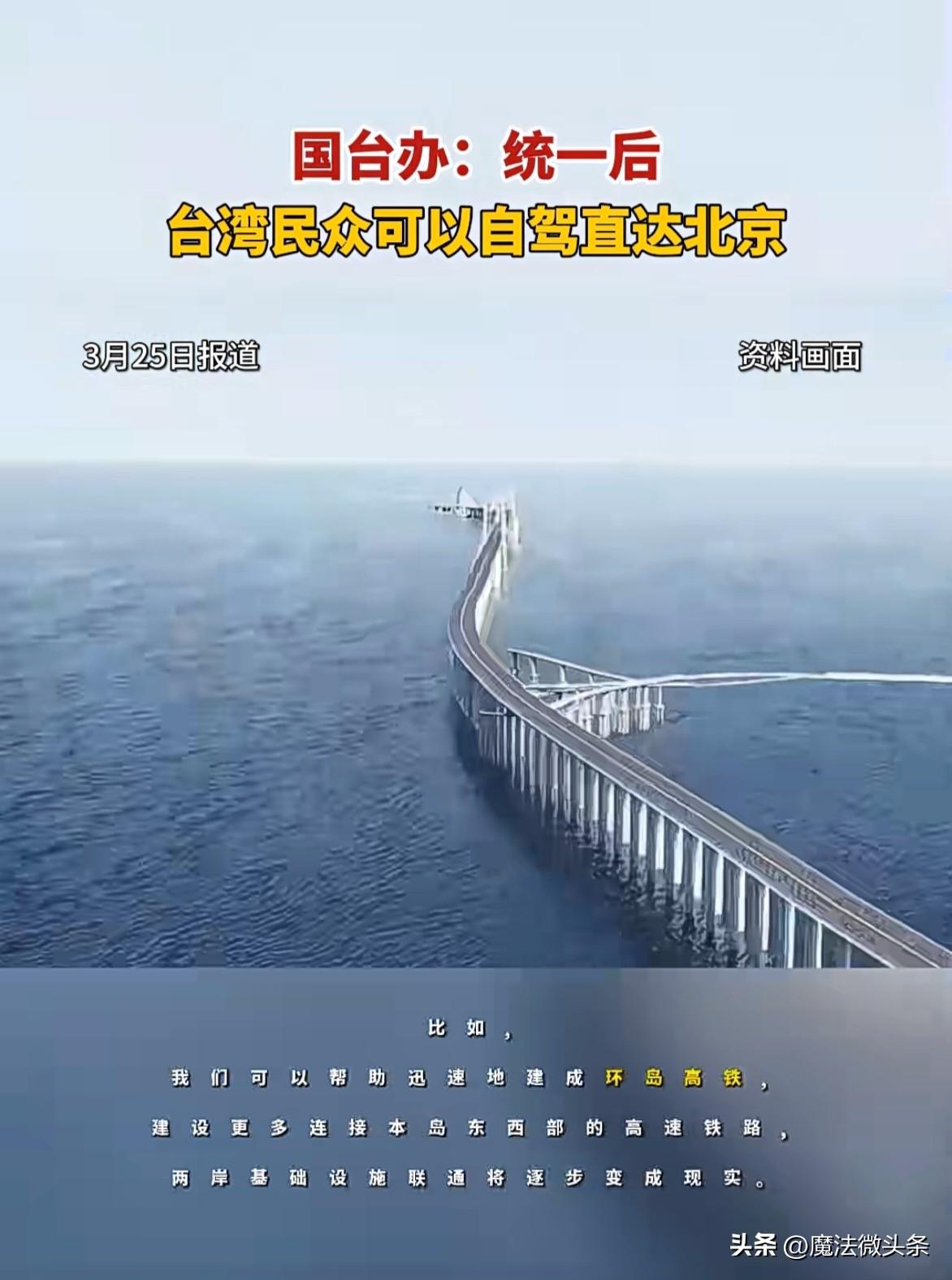 国台办说统一后台湾民众能自驾直达北京,这简直太让人期待了!想象一下,以后台湾同胞开着车,一路欣赏祖国大陆的壮丽山河,从宝岛台湾一路驰骋到首都北京。这不仅是地理上的跨越,更是两岸同胞心与心的靠近。 自驾途中,能看到江南水乡的温婉秀丽,感受北方大地的豪迈壮阔。这将极大增进两岸人民的交流和了解,让台湾民众更深入地认识祖国的大好河山和多元文化。相信统一后,这样的美好愿景很快就能实现,两岸一家亲的画面也会更加温馨。 台胞游大陆