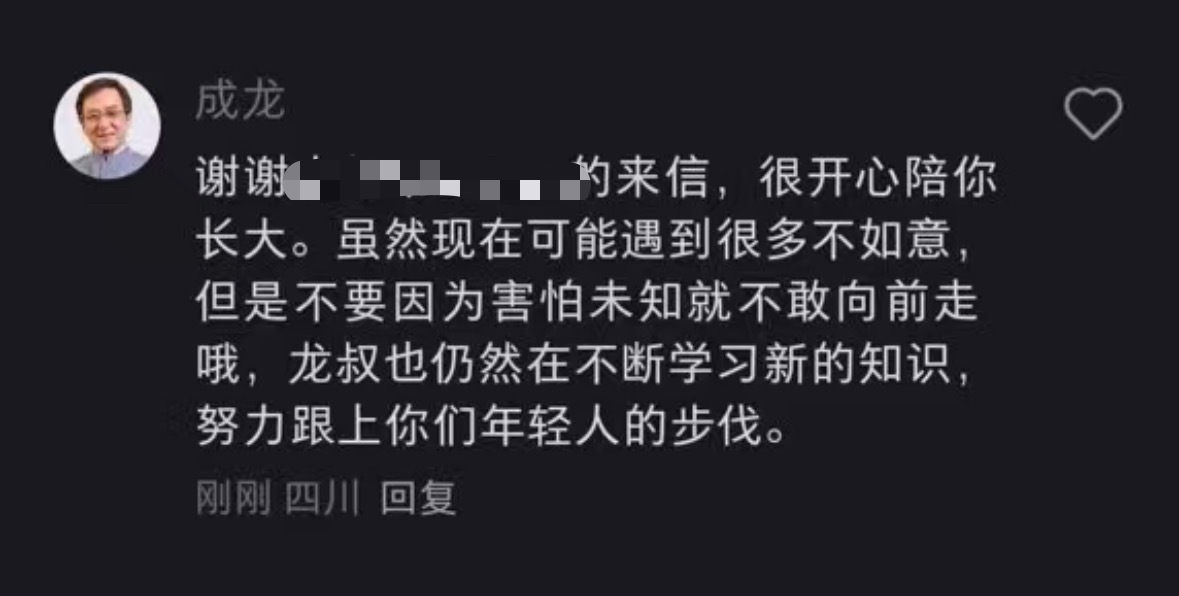 成龙的回信治好了我的精神内耗成龙六十岁也不忘学习从银幕硬汉到温柔前辈,成龙一直用真诚回应喜爱。六十岁依旧不断学习提升,敬业与初心从未改变,这才是真正的时代偶像