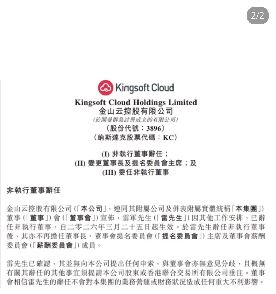 雷军不再担任金山云董事长雷总身兼多职,毕竟人的精力是有限的,专注于小米汽车!
