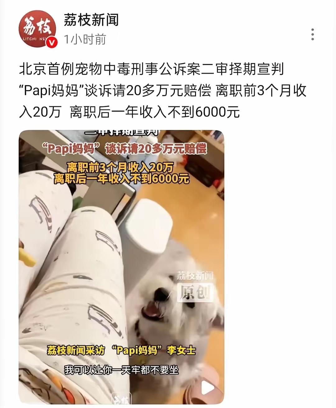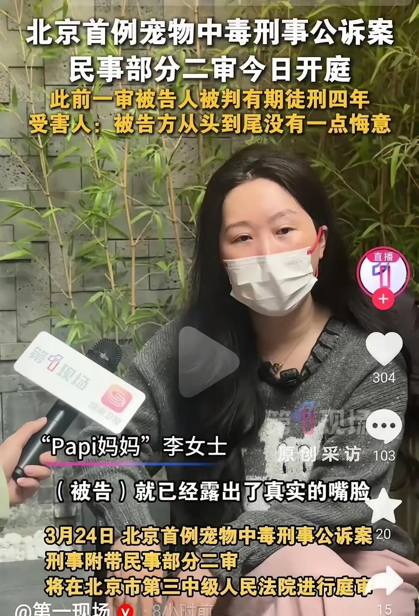 北京宠物狗中毒案原告李女士为狗辞职,曾经三个月收入20万,辞职后年入6000元感觉很委屈 李女士有点羞耻之心行吗?你应该感谢一条死狗给你带来流量,你敢公布直播带货的收入吗?每场直播都会收到很多礼物,带货也赚的不少,又给宠物厂家代言也不少赚,现在还在哭穷,真让人唾弃! 李女士说没辞职前三个月收入20万,请问你做什么这么赚钱?你之前是个地方电视台民生记者,之后进入北京一家影视公司工作。 李女士为了狗只是幌子,制造流量才是她的目的,整天在屏幕前装可怜,动不动就流泪痛哭,又是抑郁的,一些人被她表面欺骗,直播时纷纷刷礼物,卖货也大力支持,特别是一些养宠物的人都被她洗脑了,声援李女士,甘愿当韭菜。 这次事件伤害最大的是被告张老汉和小区居民,他们被狗患长期骚扰,多次提醒李女士等人无果,才做出不当行为,他也付出了四年的牢狱之苦还有一些赔偿,对于65岁身患绝症且无任何收入的老人来说才是伤害最大的。 李女士还揪着不放,又继续要求赔偿精神损失高达25万之多,一条13年老狗竟然问要2万元,真的太无耻了。 李女士还说张老汉没有悔意,你们狗长期骚扰邻居有点悔意吗?这个女人太狠毒了。宠物投毒案 宠物犬投毒案 养狗中毒 小狗投毒事件 宠物中毒案 毒犬案