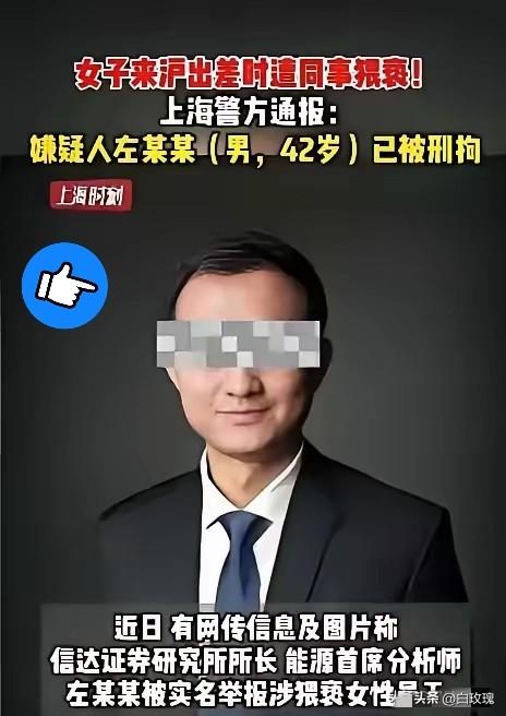 上海,某研究所所长带着女下属出差时猥亵了女下属,还对女下属说:“只要打一针就好”,吓得女下属奋力反抗。好在当时酒店的保安及时解救,女子逃跑后才得以报警。目前,警方已将该所长抓获并刑拘,研究所也暂停了所长的一切工作,并配合调查。 “德高望重”四个字,这次被撕得粉碎。 看到这条新闻时,我特意去查了报警回执的细节,越看越觉得脊背发凉。 这位女员工在微信工作群里的控诉,最扎心的一句是:事发前她一直认为左前明是“一位德高望重、为人正直、爱惜下属的好领导”。 2023年毕业即入职的年轻员工,对行业大佬天然带着滤镜。 饭局、车上、酒店拉扯,每一个场景都精准踩中职场权力不对等的雷区。 最令人发指的是那句“只要打一针就好”。 这不是开玩笑,这是赤裸裸的威胁和试探。他想用这种半真半假的话,把犯罪行为包装成“酒后失态”。 好在,这个姑娘没怂。 报警回执详细记录了那晚的惊魂时刻:车里被猥亵,到酒店后还被拉扯想拖进房间,她逃到停车场被塞进出租车,拼命挣扎呼救,最终酒店保安介入才脱身。 这中间任何一个环节她犹豫了、妥协了,结局都会完全不同。 很多人问,为什么这种事屡禁不止? 看看左前明的履历就知道了:中国矿业大学博士、注册咨询工程师、中国煤炭工业协会原副处长,被称为“下矿百次的卖方分析师”。 头顶无数光环,手握资源人脉,这样的人在体制内、在行业里待久了,很容易产生一种错觉——自己可以为所欲为。 他以为,一个刚入职两年的小姑娘,不敢反抗,不敢声张。 他赌的是权力的威慑力,赌的是受害者的沉默。 但他赌输了。 3月24日晚上发生的事,3月25日凌晨1点报警,当天警方就介入调查,25日晚即通报刑拘。 这速度,说明什么?说明证据确凿,说明警方对这类案件零容忍。 信达证券的反应也算及时:暂停一切工作,启动内部核查,配合警方。 但我想问一句:事发之前,公司有没有建立完善的防止性骚扰机制? 《妇女权益保障法》明确规定,用人单位应当制定禁止性骚扰的规章制度,明确负责机构,畅通投诉渠道。 很多公司把这当摆设。 出事前,制度贴在墙上;出事后,赶紧撇清关系。 这种事,绝不能止于“抓一个所长”。 全国总工会最近发布的劳动法律监督提示函,专门强调要“严防严控工作场所性骚扰”。 最高法也发布过典型案例,明确支持用人单位开除实施性骚扰的员工。 法律层面已经足够清晰,问题出在执行层面。 太多受害者不敢报警,因为怕被报复,怕丢了饭碗,怕舆论指责“苍蝇不叮无缝的蛋”。 这位女员工选择了公开实名指控,甚至在微信工作群里发声。 她说,是为了维权,也是为了避免同样的事情再落到别人身上。 这句话的分量,远比我们想象的重。 她用自己职业生涯的风险,换来了更多人的安全。 这样的勇气,配得上所有尊重。 回到事件本身,左前明目前已被刑拘,案件还在侦办中。 他会不会被判刑?会判多久?公司要不要承担连带责任?这些都需要法律给出答案。 但有一件事是确定的:那些在权力庇护下肆意妄为的人,迟早要为轻蔑付出代价。 “打一针就好”? 这一次,该打针的,是他自己。 各位读者你们怎么看?欢迎在评论区讨论。