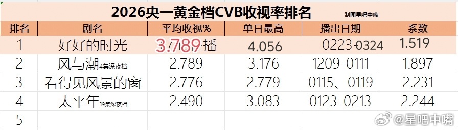好好的时光 梅婷 田雨 陈昊宇《好好的时光》央一收官战报!恭喜暂年冠、暂史亚!全剧酷云集均:2.4943,暂列1/4全剧CVB集均:3.789,暂列1/4